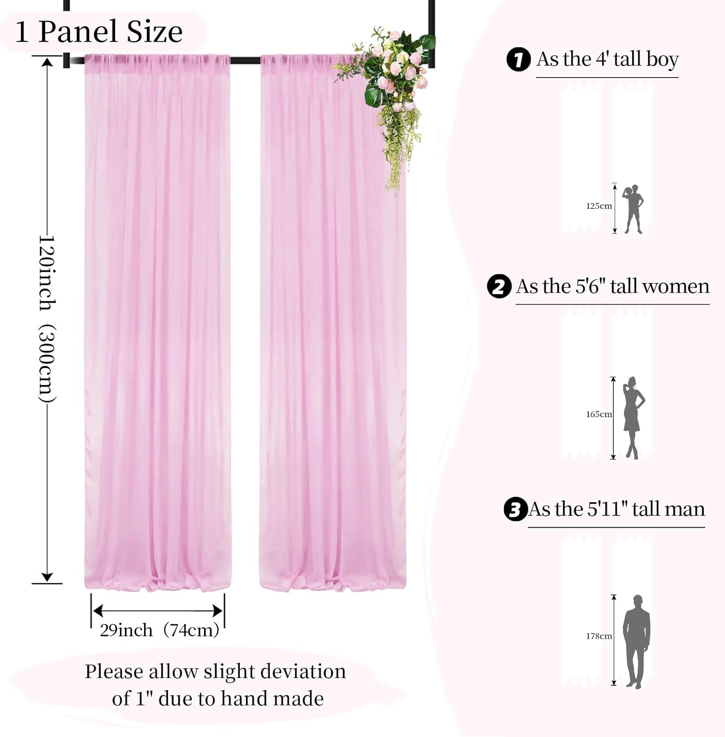 - ★ SHEER CHIFFON CURTAINS :Includes 2 Panels Width 29'' by 120'' Long chiffon backdrop curtain(74x300cm), total area of 5ft wide by 10ft high