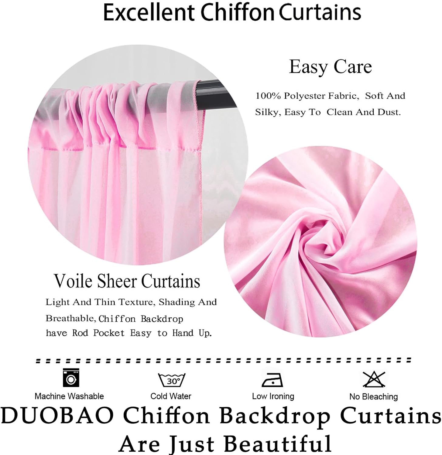 DUOBAO Pink Chiffon Backdrop Curtain-2 Panels 29x120-Inch Wedding Draping Beach Curtains for Living Room Polyester Voile Window Darpes Photography Backdrops for Party Ceremony (29''x120''x2pc)