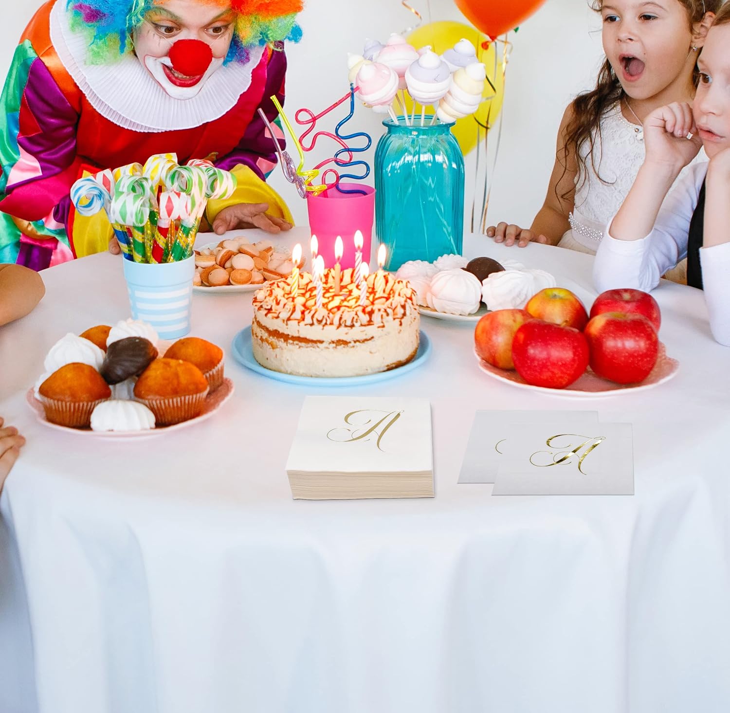 - High Quality: Napkins are made of high quality thick paper. Napkins are soft and absorbent & dry your hands quickly. These personalized napkins will be great for any party. The metallic gold A initial party napkins really adds dimension to your parties as your guests will love the pretty design.