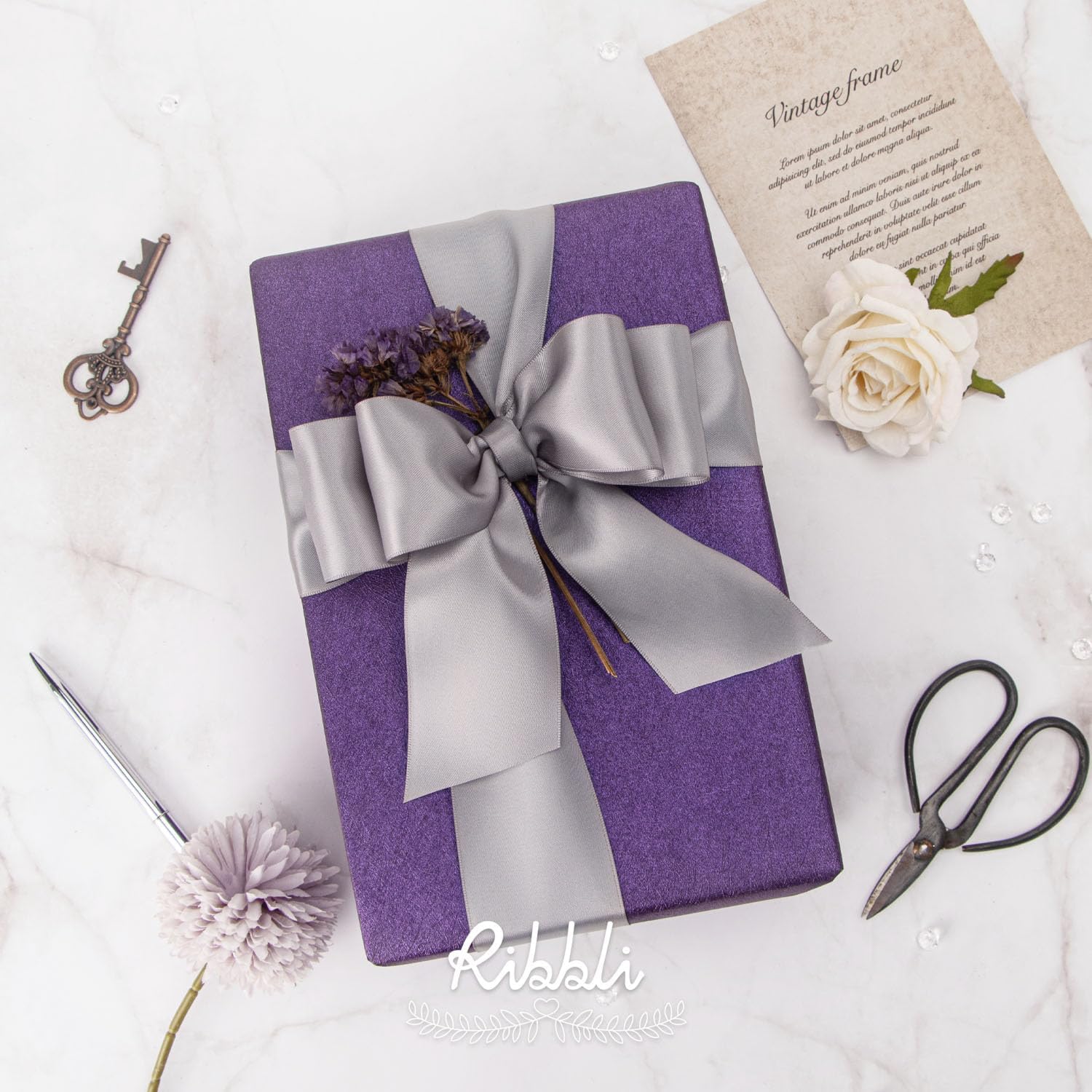 Ribbli Silver Double Faced Satin Ribbon, 2” x Continuous 10 Yards,Use for Bows Bouquet,Gift Wrapping,Floral Arrangement,Wedding Decoration