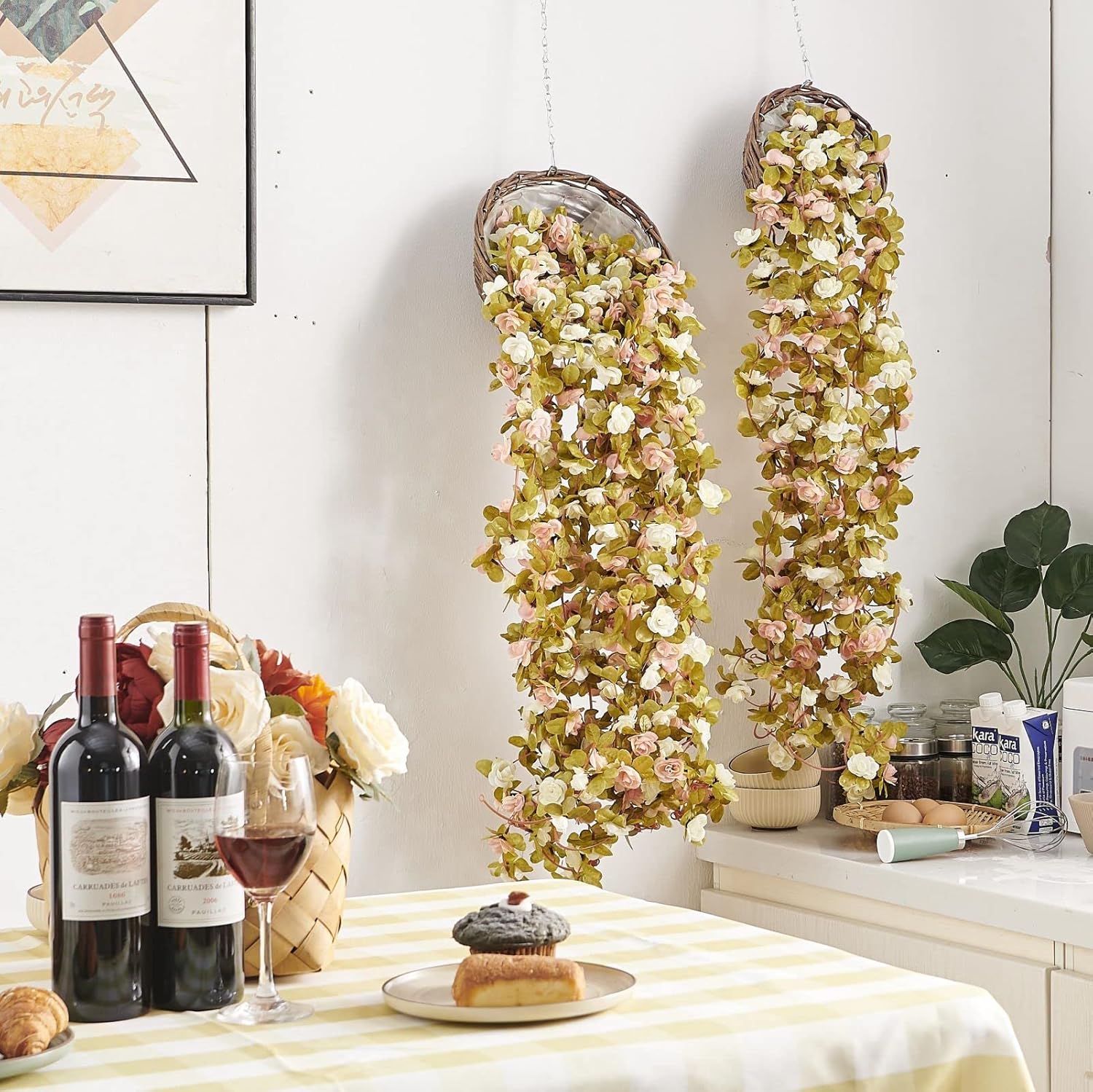 - Material & Features: PONKING fake rose garland is made of silk and plastic. Durable silk and plastic flowers ensures durability and no risk of leaves or flowers dying. The rose vine spares you from endless watering. Different from real rose flowers, our artificial vines with rich color layers and natural appearance will never fade. They will last forever. Nice choice for your daughter's bedroom