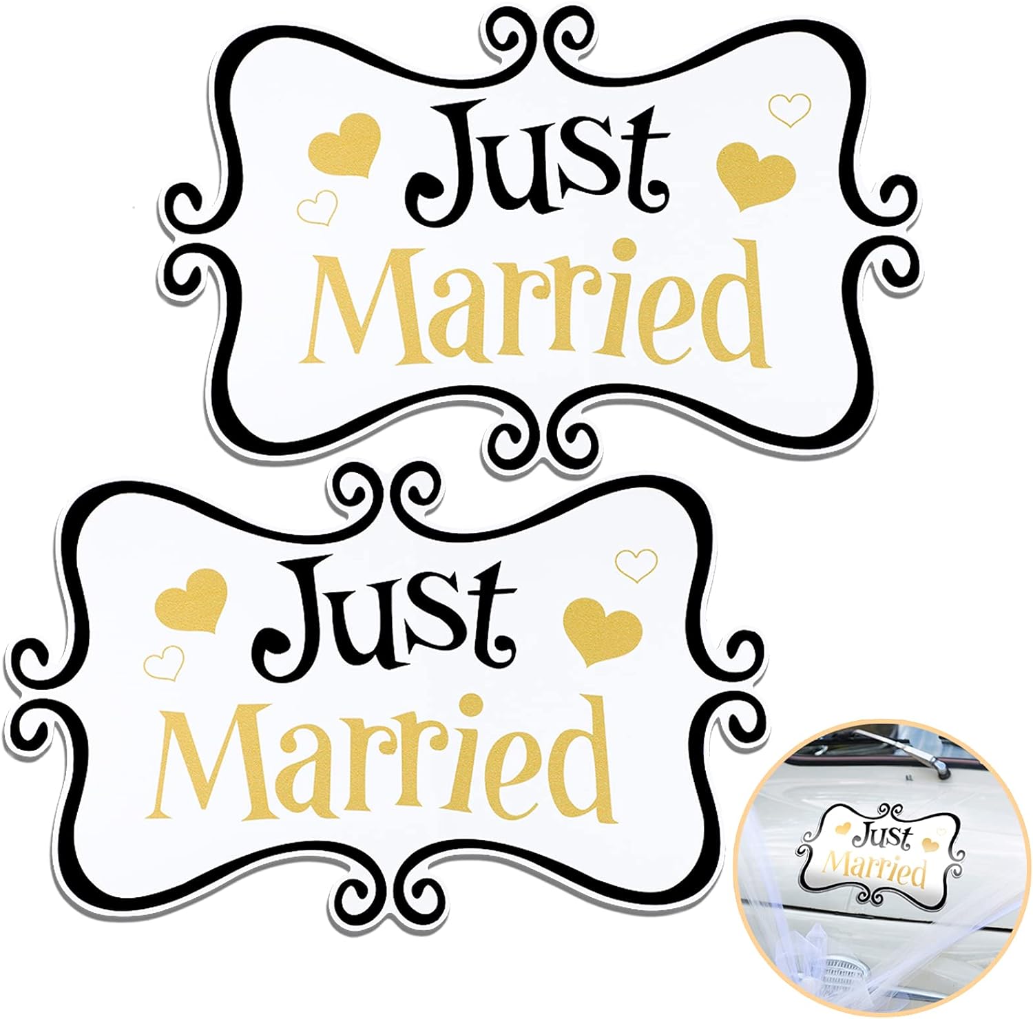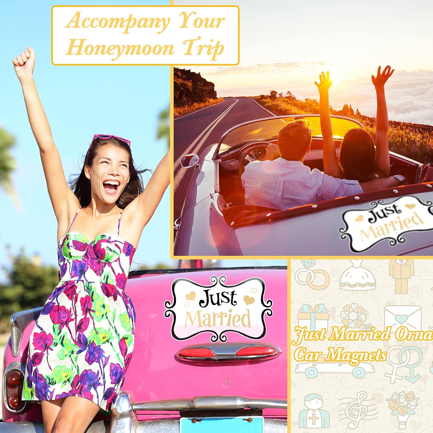 - What you will get: the package contains 2 pieces of just married car magnets with the size of approx.13.97 x 8.85 inches, the proper size fits most styles of cars as well as locations on the body, which is eye-catching and you can see the ornate car magnets even from a distance