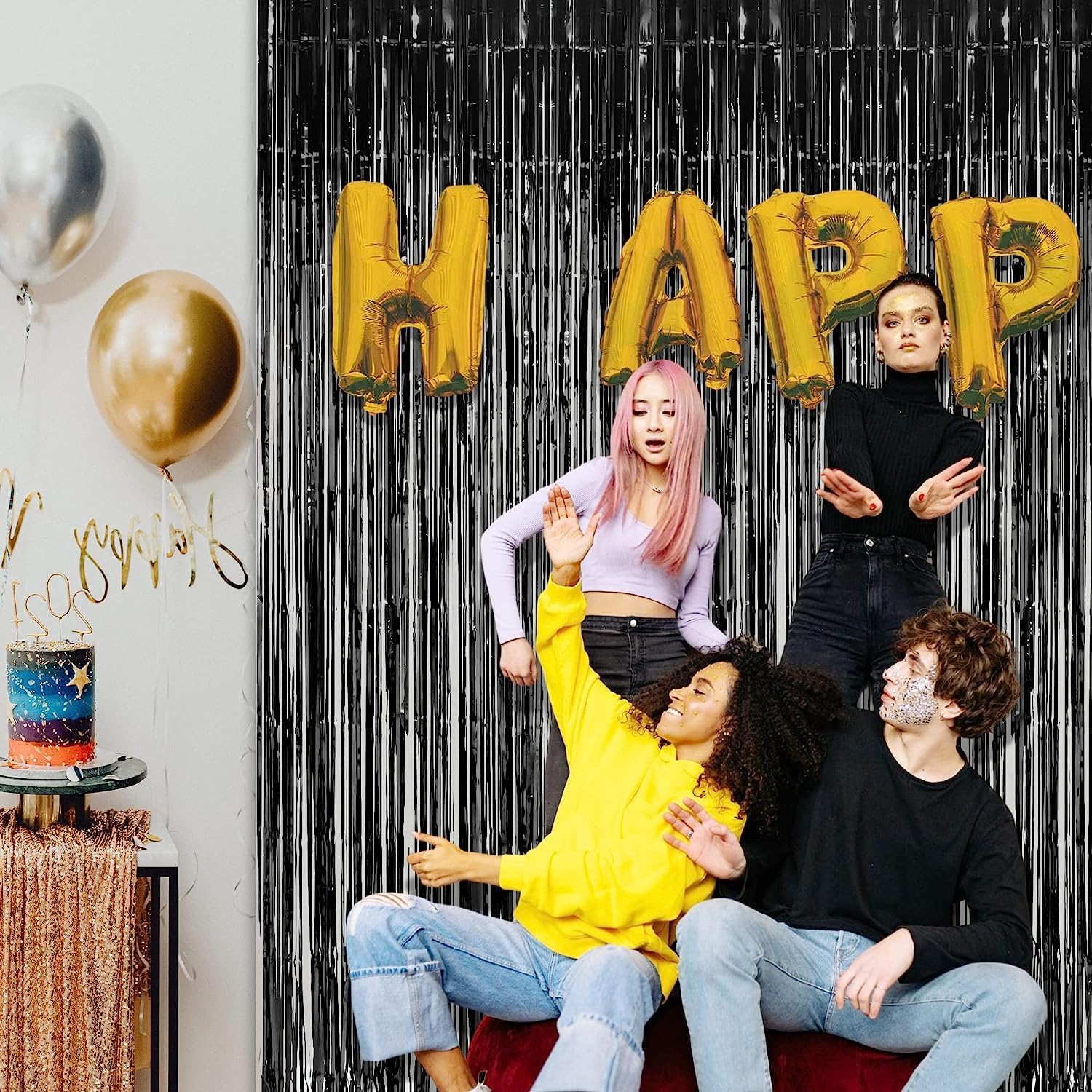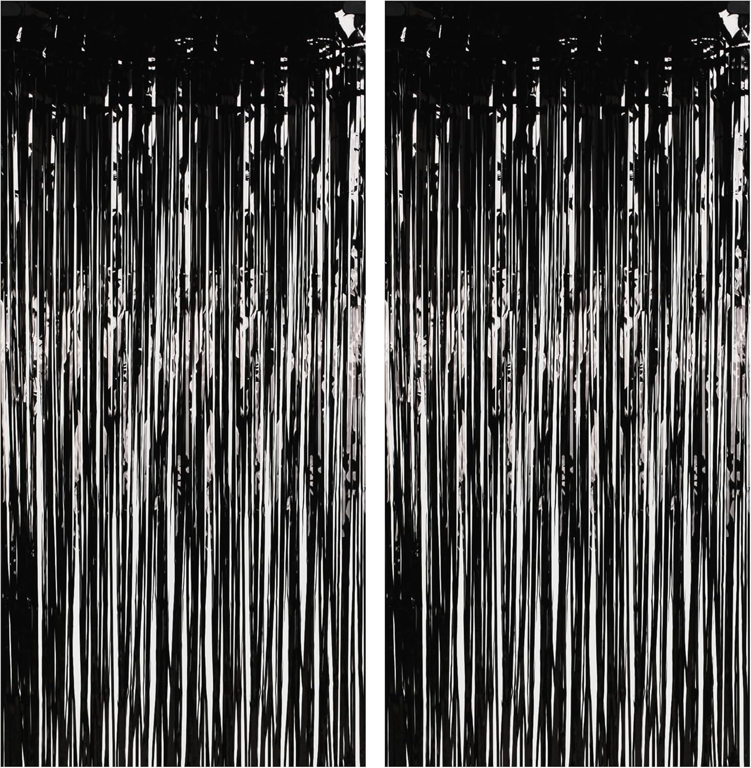 Foil Fringe Curtain Halloweens Party Decorations - Pure Black Tinsel Photo Backdrop Party Steamers Curtains for Birthdays Music Christmas Stranger Theme Parties