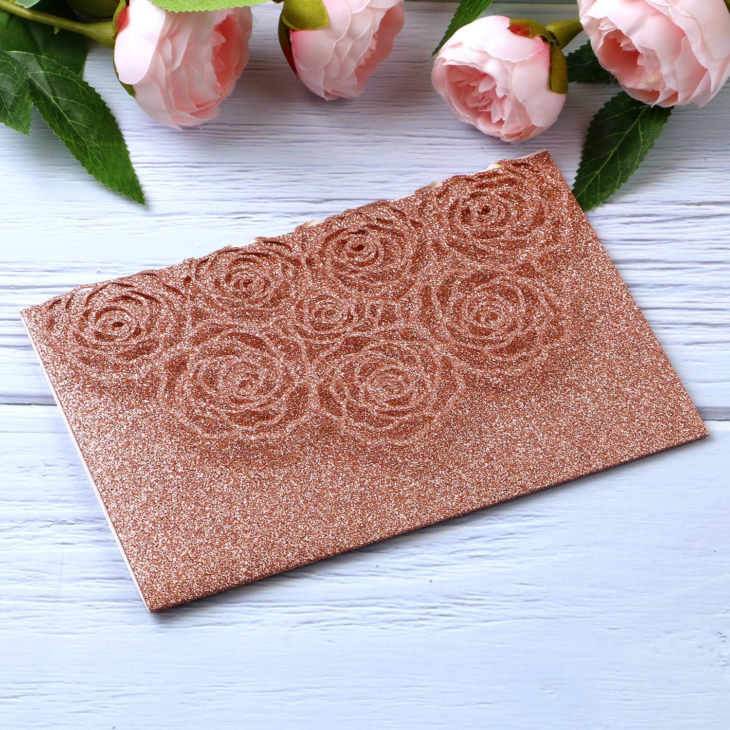 20 Pcs Laser Cut Wedding Invitations Card Pocket with Envelope for Birthday Party Baby or Bride Shower Invite suitable for 5 * 7 Inches Insert Paper (Rose Gold Glitter)