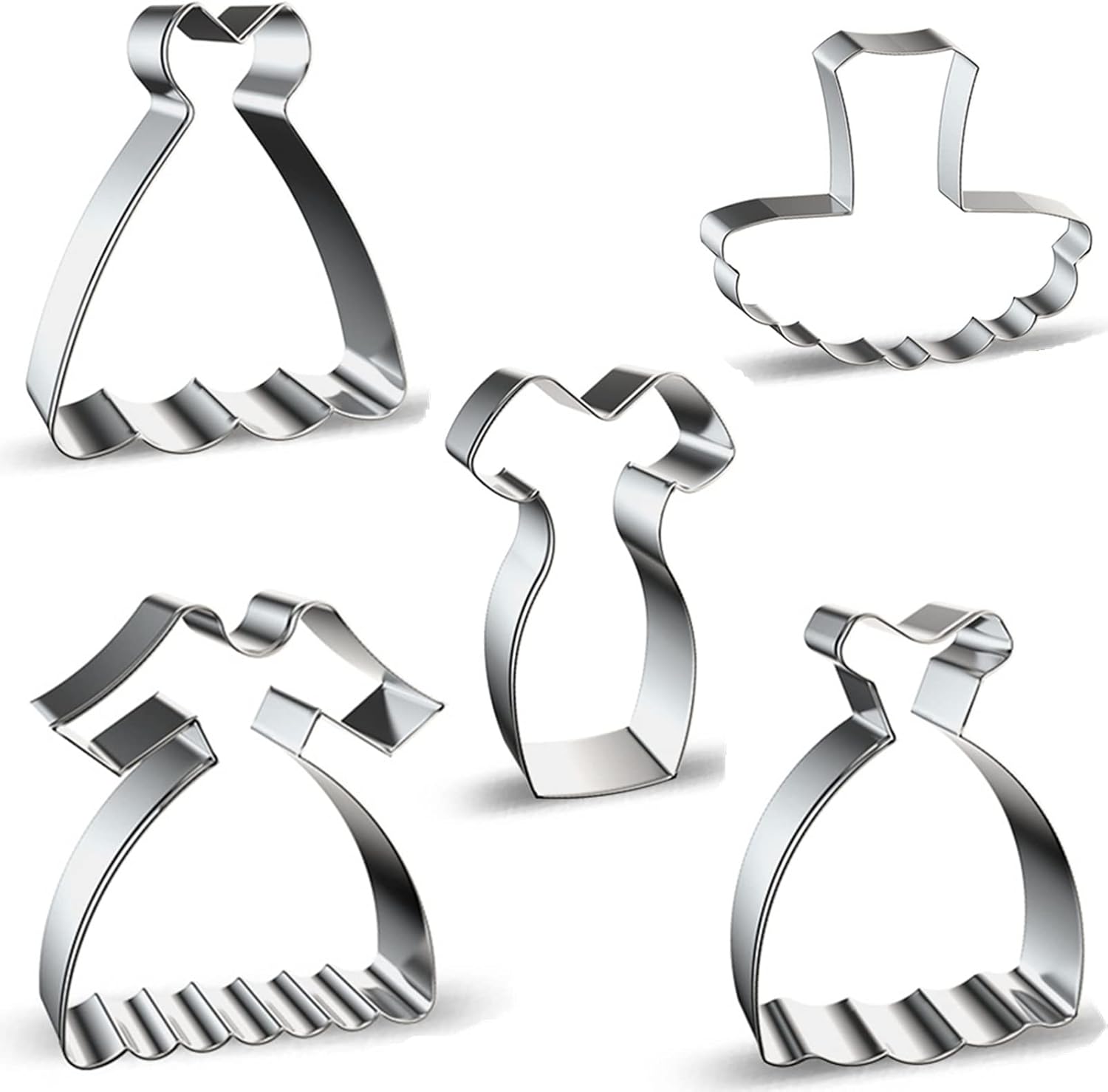 - ★【5 PCS OF DRESS COOKIE CUTTER SET】 - Stainless steel dress cookie DIY molds set, 5 different dress shapes cookie cutting molds for holiday, wedding, birthday party, Christmas cooking tool, reusable and durable. Have fun to making cookie with families together.
