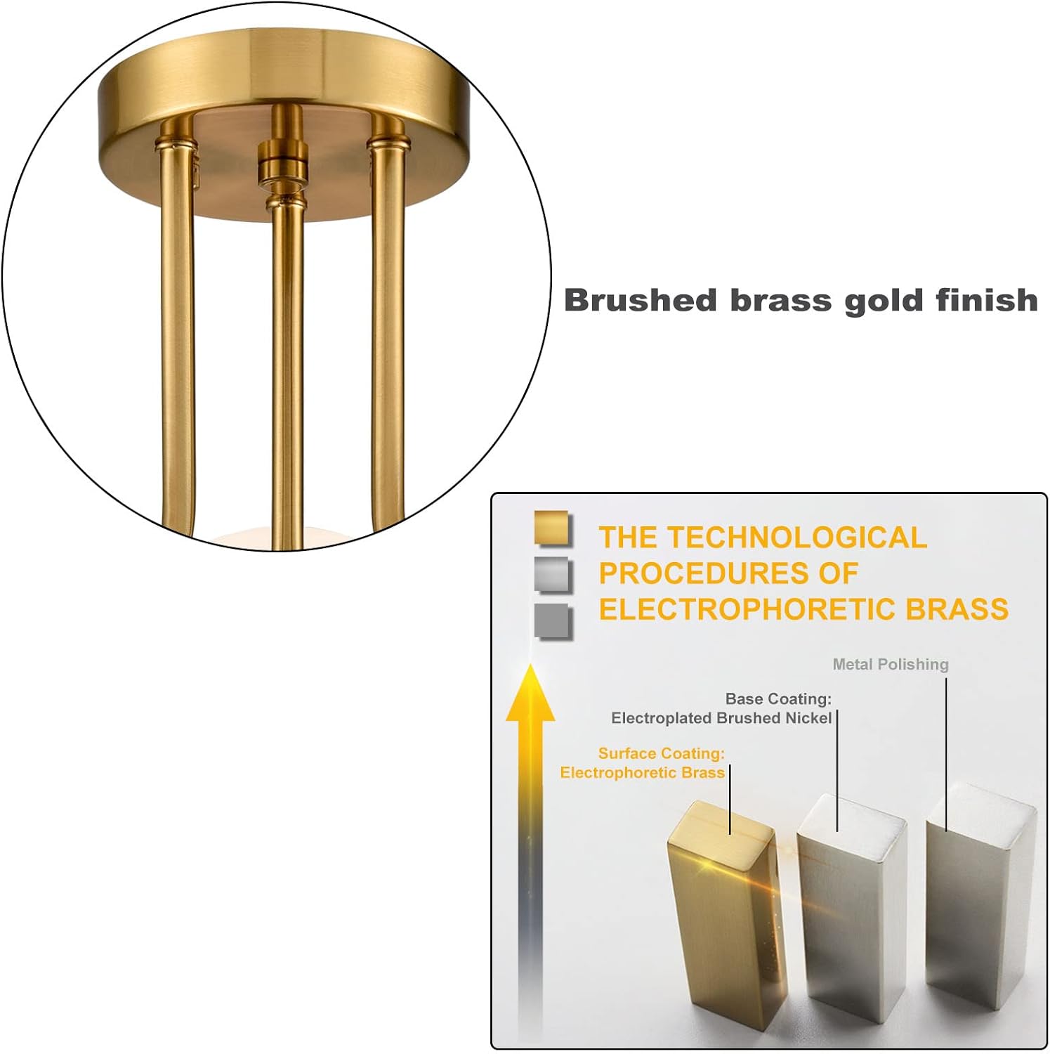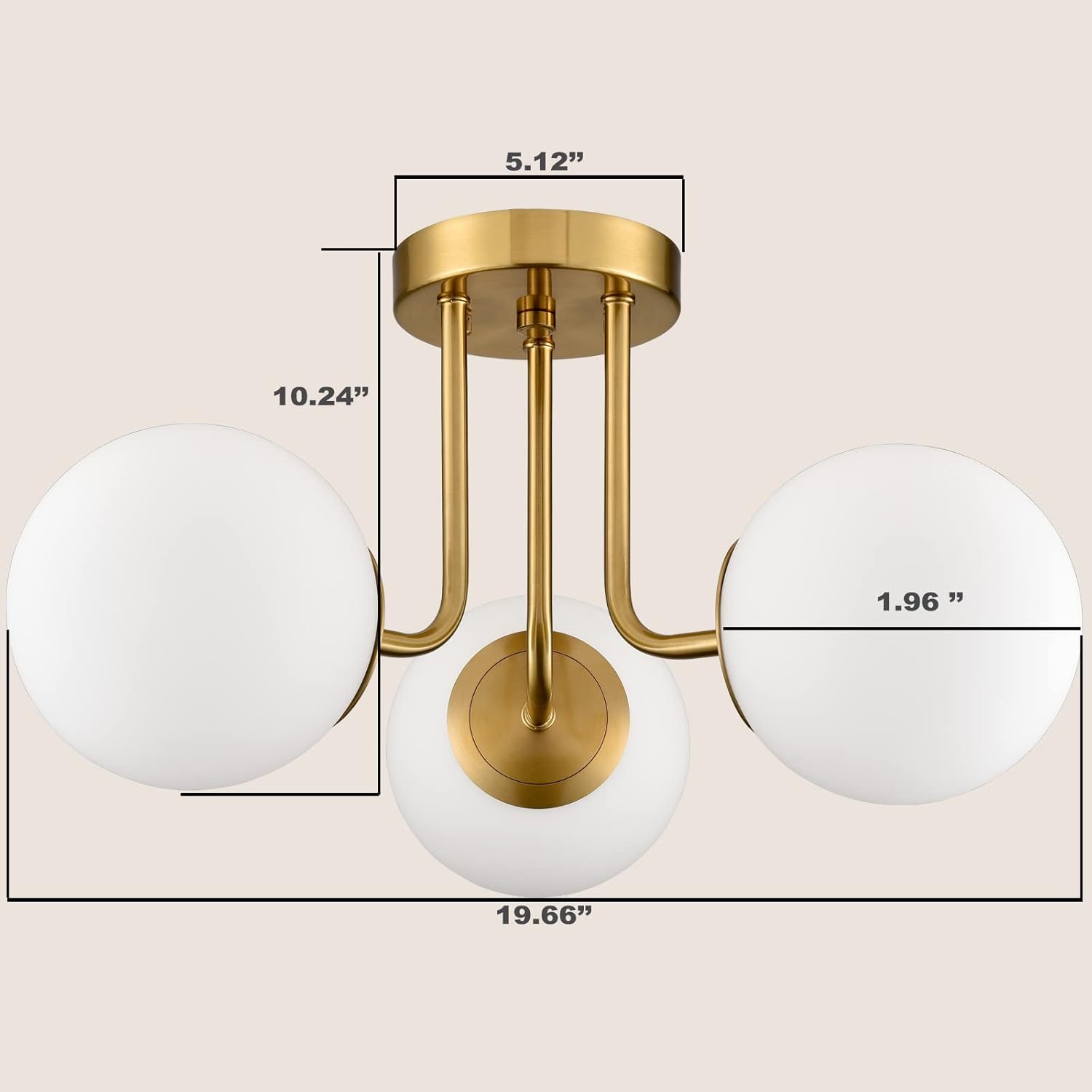 - The 3-light sputnik semi flush mount light fixtures crafted from globe off-white manual blown glass ,combination of electrophoresis brass gold metal finish.It can reflect the sparkling and even lighting ,adds more chic and luxury feeling .The durable material can avoid rust for a long time used.
