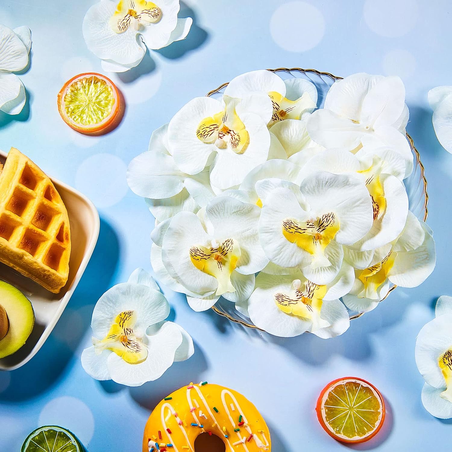 40 Pieces Orchid Petals Artificial Decorations Wedding Party Orchids Heads Flowers Faux Silk Phalaenopsis Butterfly Flower Heads for DIY Craft Home (White)
