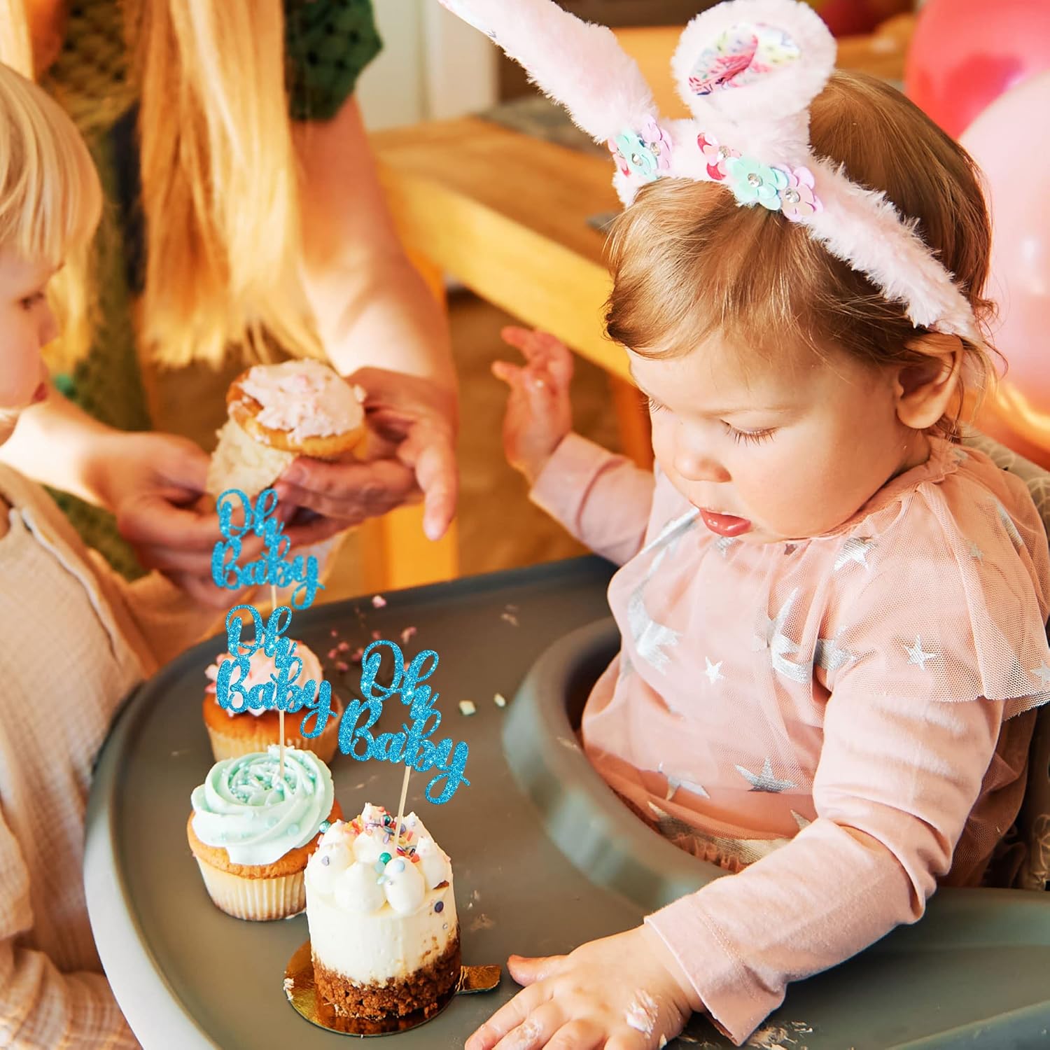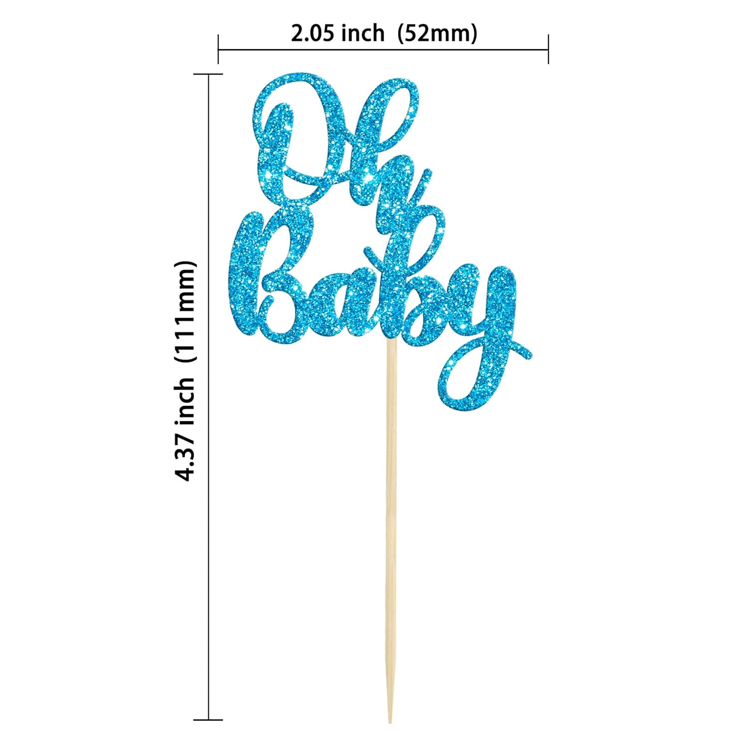 Gyufise 36 Pack Blue Glitter Oh Baby Cake Cupcake Toppers Picks for Wedding Birthday Baby Shower Party Decorations