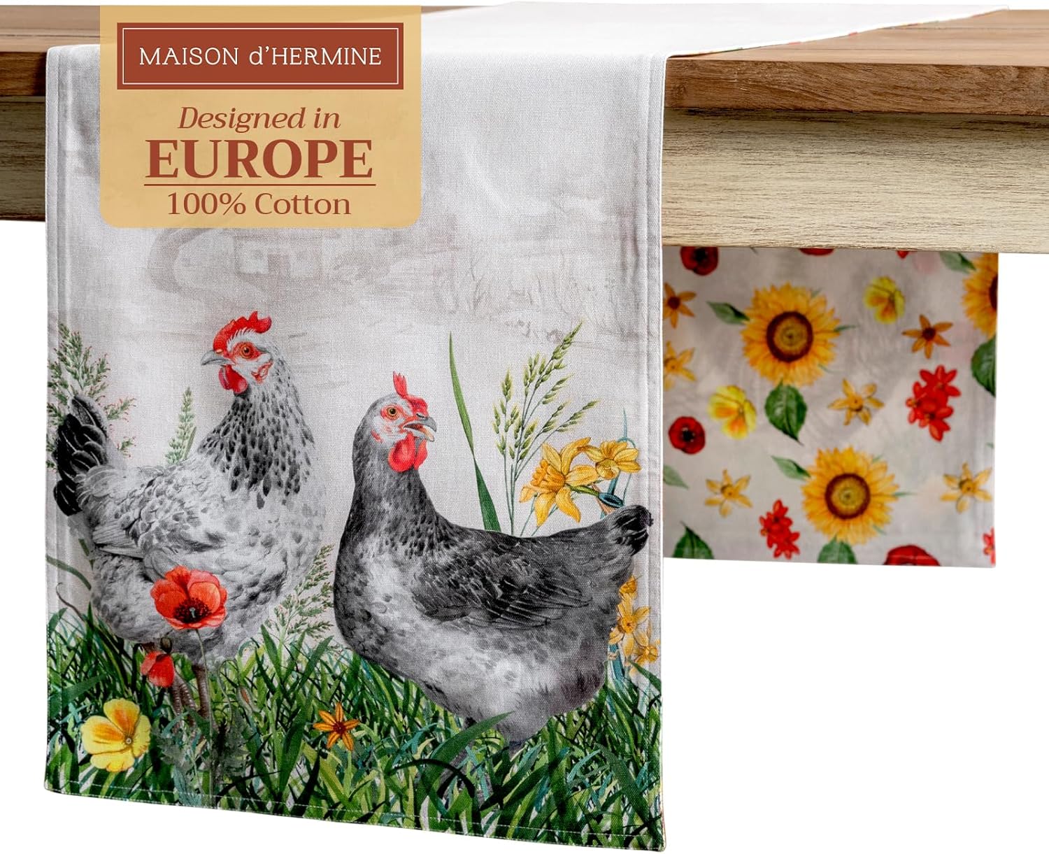 Maison d' Hermine Table runner 100% Cotton Double Layer Table Runners 72 inches long Decorative for Home Kitchen Dining Party Baby Shower Wedding Bridal Shower Spring Summer (Basse Cour, 14.50" x 72")
