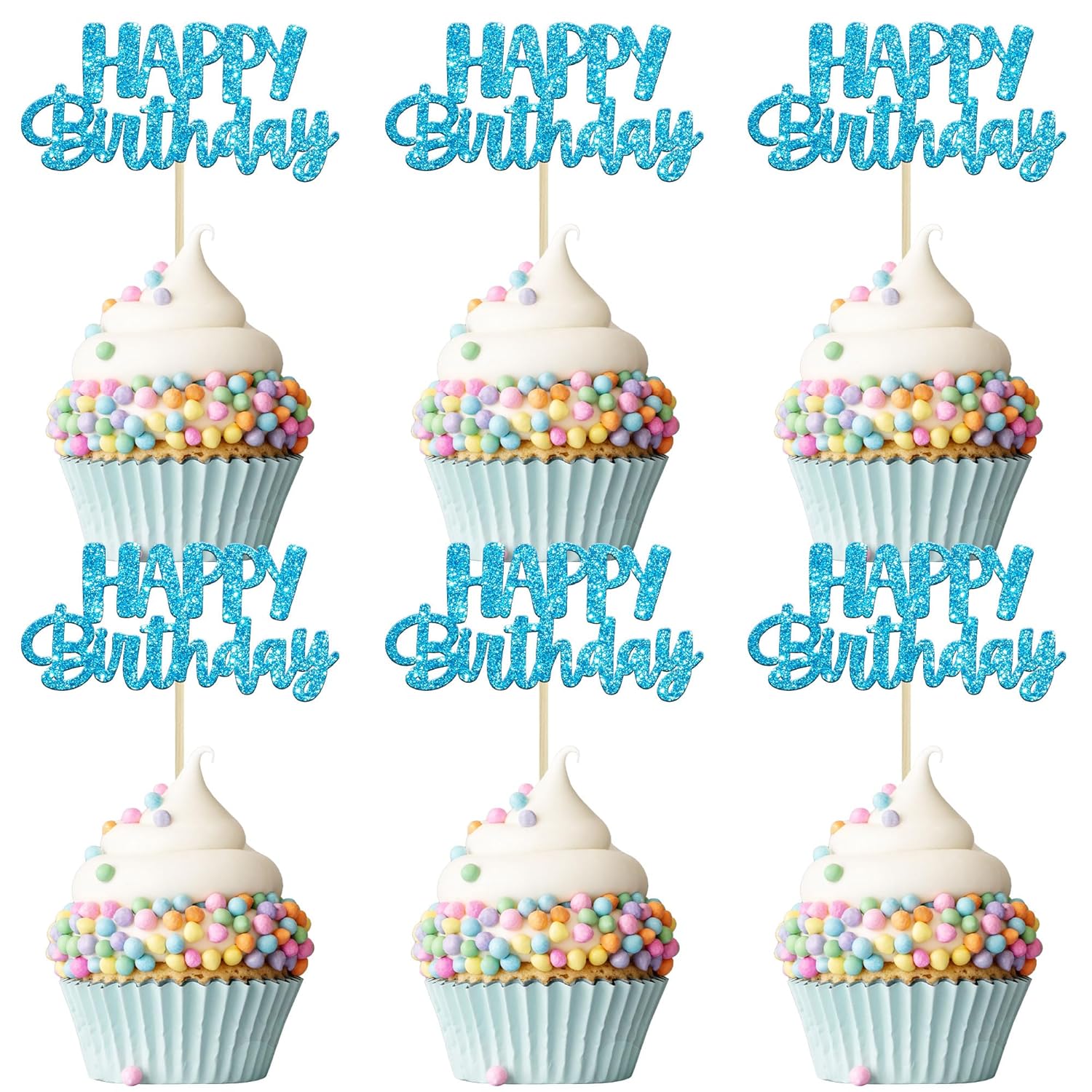 - 🌟 Premium Material: These glitter happy birthday cupcake Toppers are made of high quality paper and food-grade toothpick, very safe to put them on cakes, cupcakes, ice cream, fruits, pie, dessert, cheese or any dish and food appetizer you want to decorate.