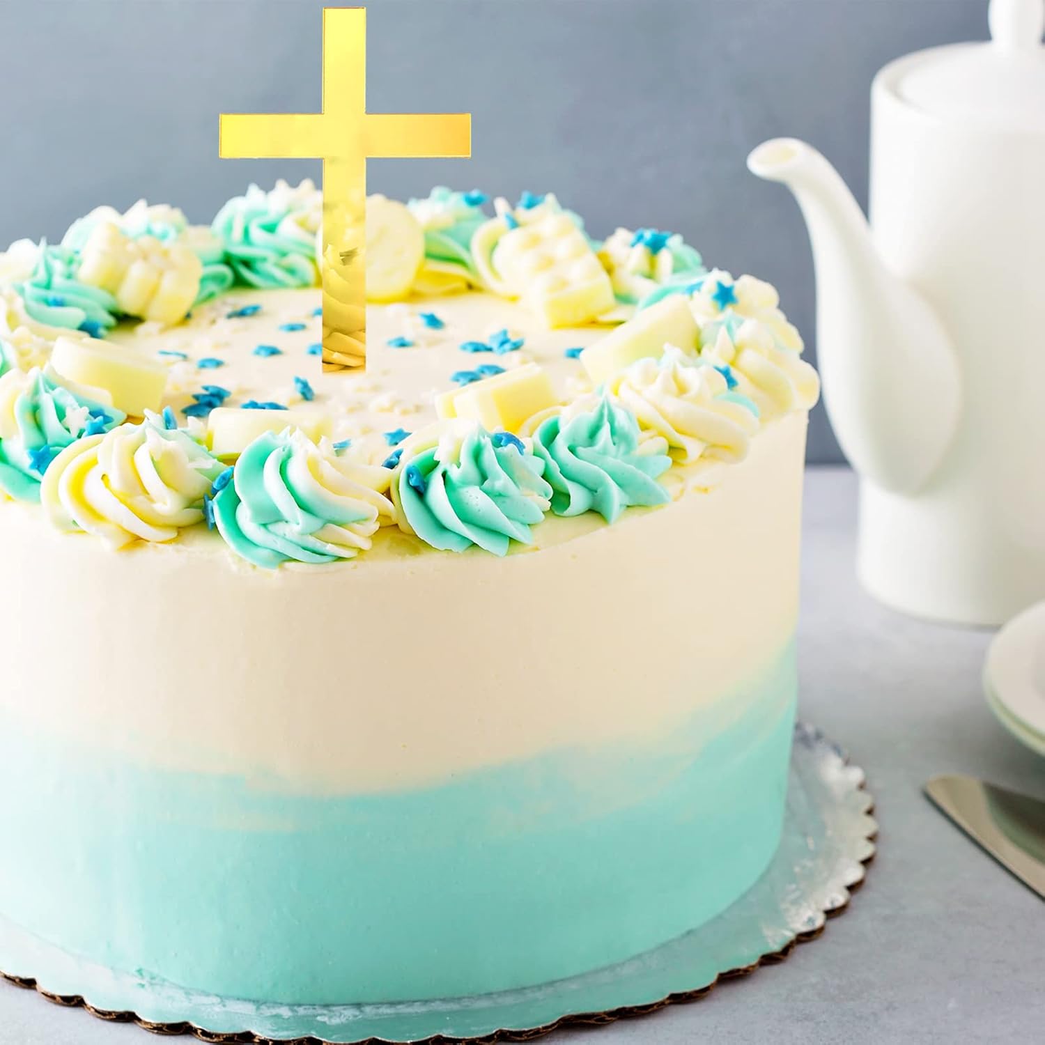 - Material: these baptism cake decorations are made of quality mirror acrylic, which is reliable and safe to use for cakes; The surface of cake baptism topper is covered film to protect from scratching; You can clean these acrylic cake toppers and use repeatedly for the next party