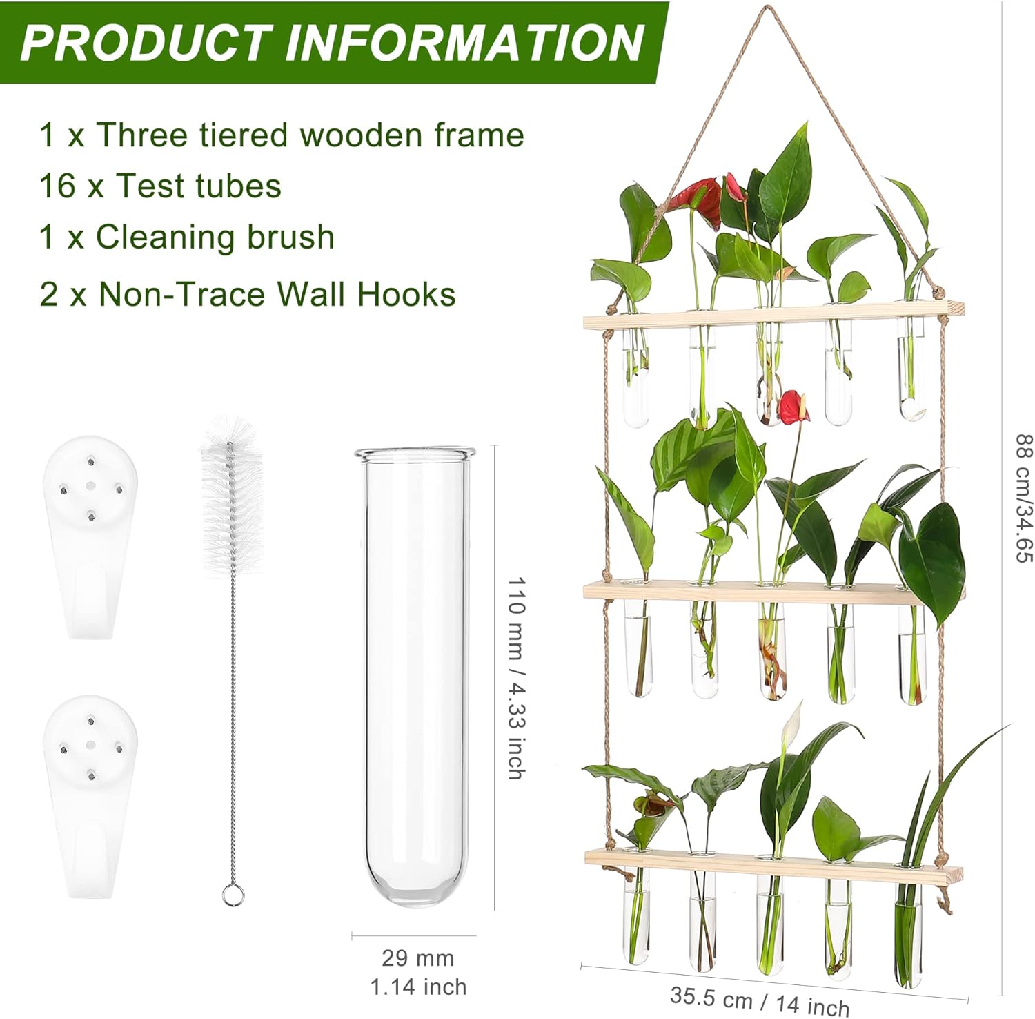 - Package Contents: Includes 14" L x 1.8" W x 0.6" H wooden frame and 16 x 4.3" test tubes
