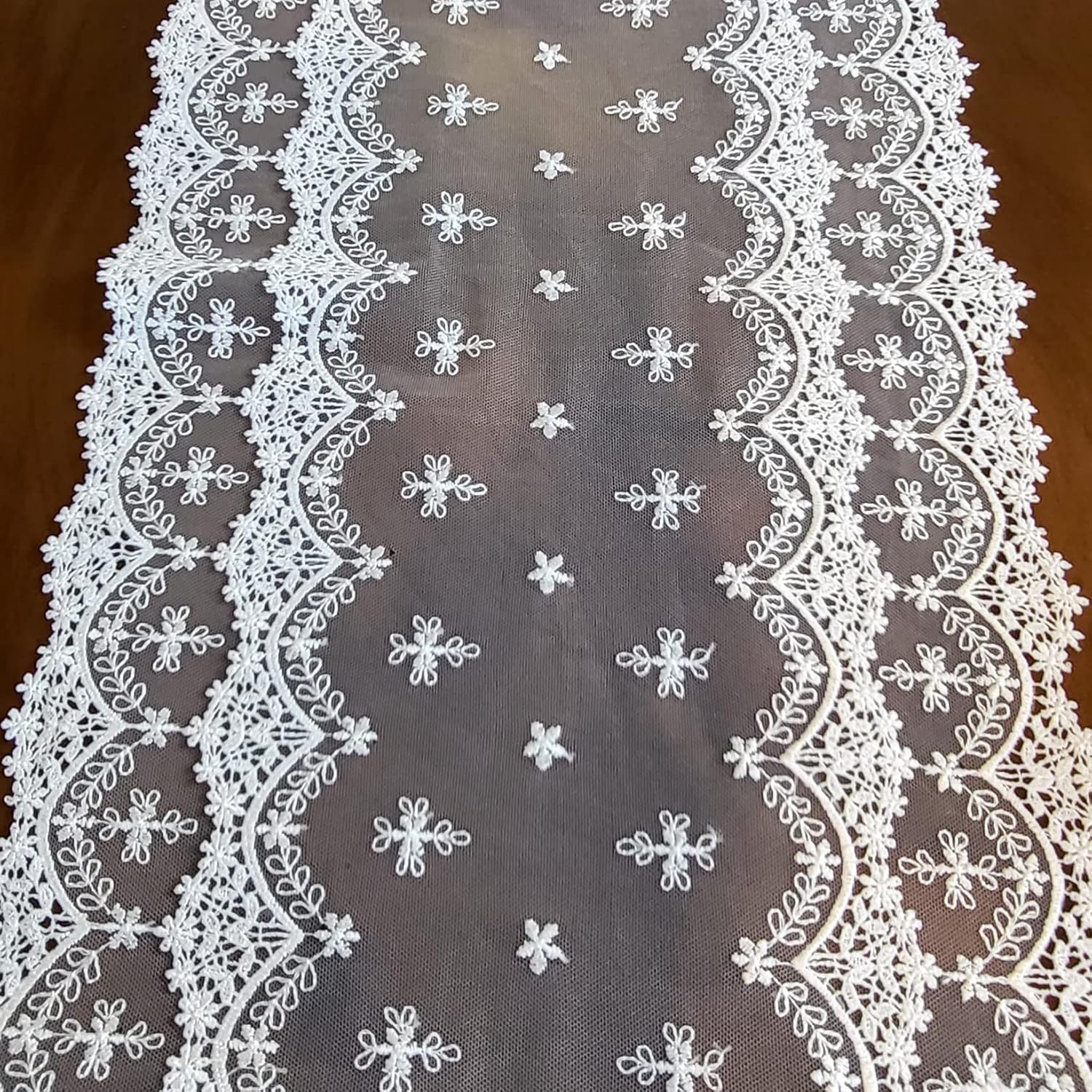 Inicia Table Lace Runner 12×70 inch Embroidered for Holiday Wedding Picnic Daily Dinner Tables White Decor (Polyester, 12"×70" (31cm×180cm))