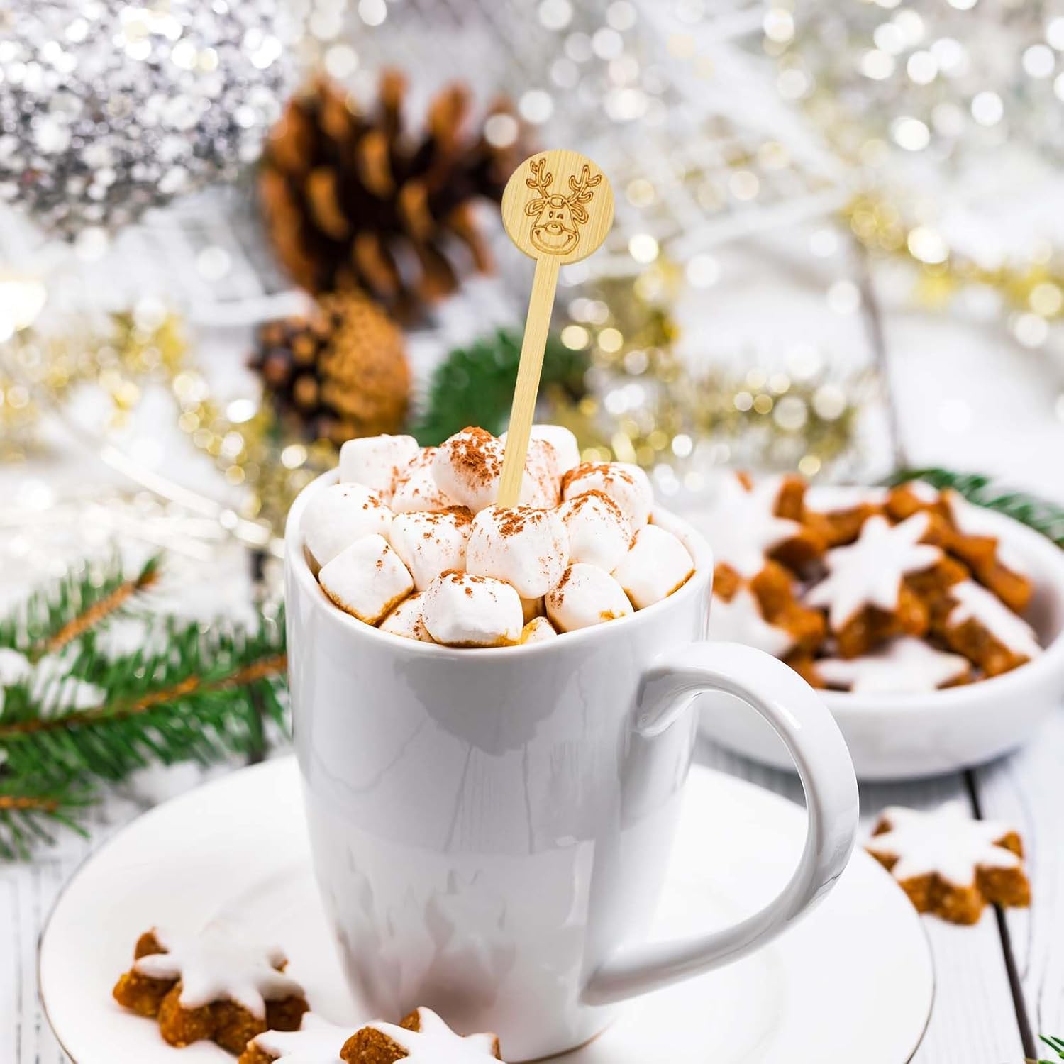 - CHRISTMAS BAMBOO COFFEE STIRRER: A gift with a Christmas atmosphere! Our bamboo coffee sticks are in line with the Christmas theme and winter atmosphere, creating a Christmas atmosphere in your home