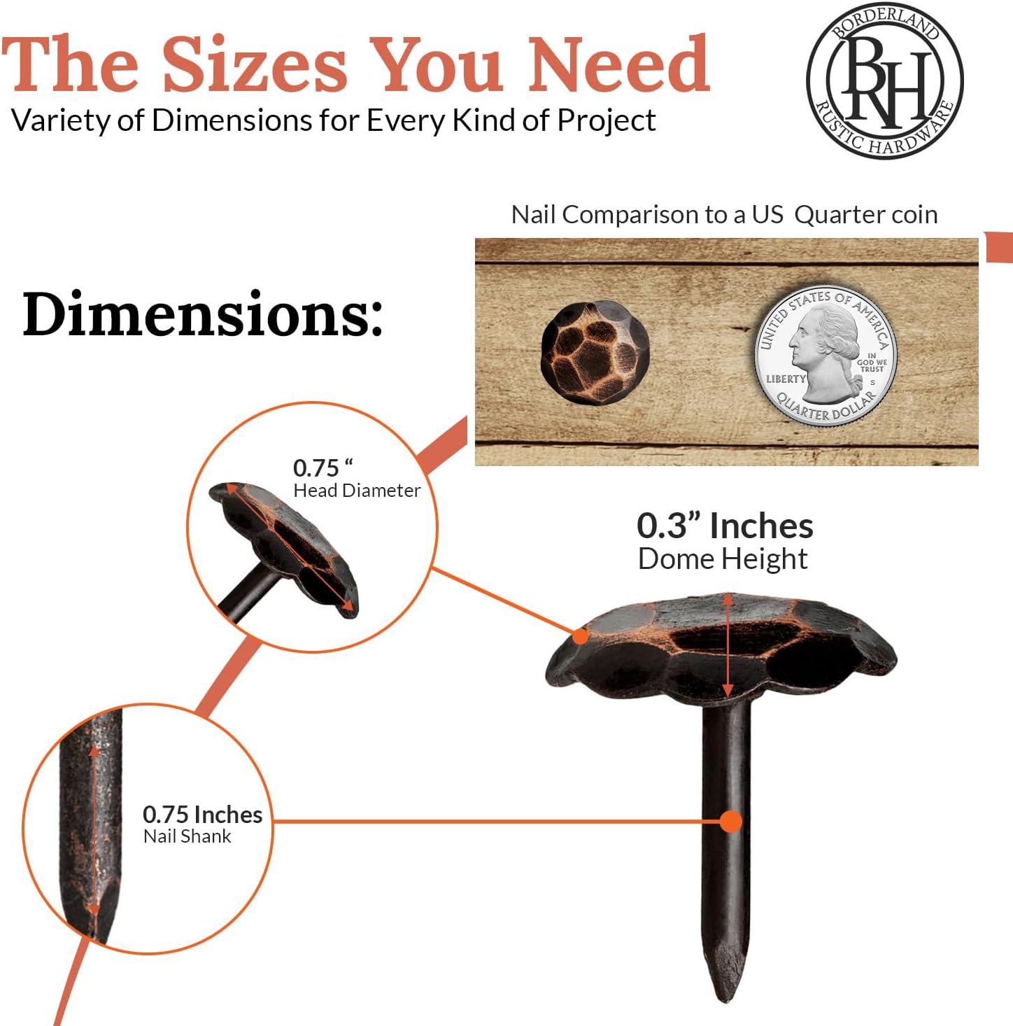 50 Pack 0.75" Round Head Iron Clavos Decorative Nails – Oil Rubbed Bronze – Handmade Rustic Round Fasteners for Farmhouse Shutters, Faux Wood, Barn Doors, Shutters, Gates – Ornamental Wood Accent