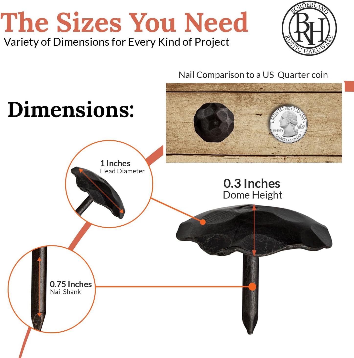 50 Pack 1" Small Round Head Iron Clavos Decorative Nails – Sealed Unfinished – Handmade Rustic Round Fasteners for Farmhouse Shutter, Faux Wood, Barn Door, Shutters, and Gates – Ornamental Wood Accent