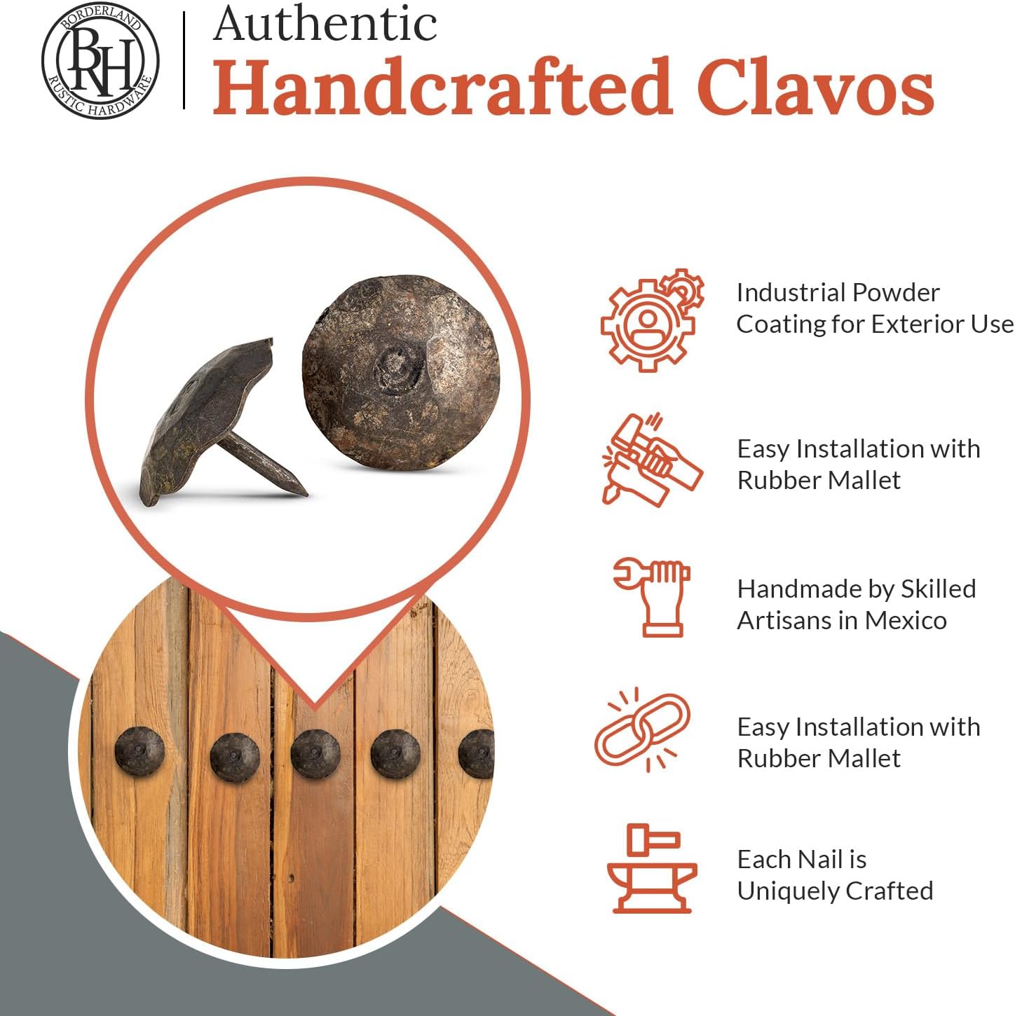 50 Pack 1.25" Round Head Iron Clavos Decorative Nails – Unfinished – Handmade Rustic Round Fasteners for Farmhouse Shutters, Faux Wood Beams, Barn Doors, Shutters, Gates – Ornamental Wood Accent
