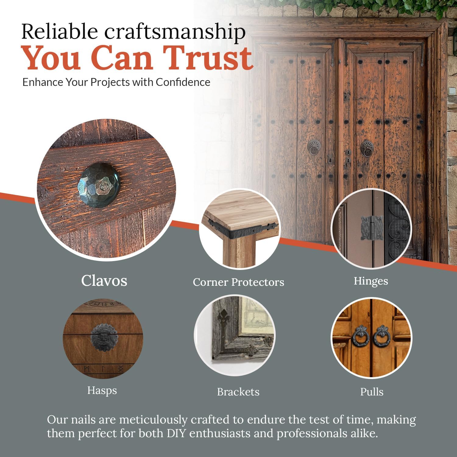 - PREMIUM FABRICATION: Each iron nail is meticulously MIG welded by hand to ensure maximum strength and longevity. Unlike competitors who use less durable spot welding, our nails are built to withstand the elements, making them ideal for exterior shutters, faux wood beams, and other applications requiring robust and reliable decorative hardware.