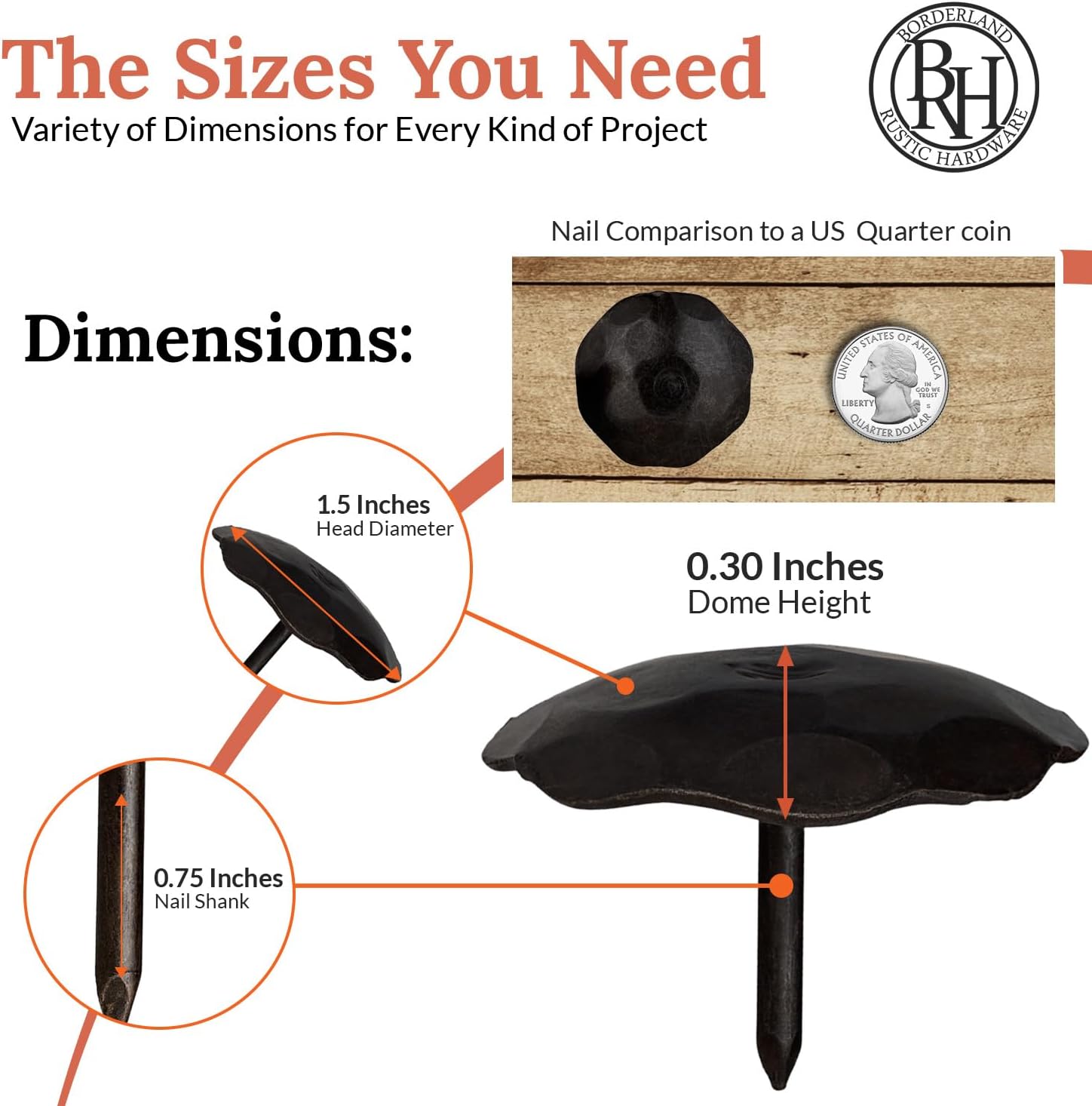 50 Pack 1.5" Round Head Iron Clavos Decorative Nails – Sealed Unfinished – Handmade Rustic Round Fasteners for Farmhouse Shutters, Faux Wood, Barn Doors, Shutters, Gates – Ornamental Wood Accent