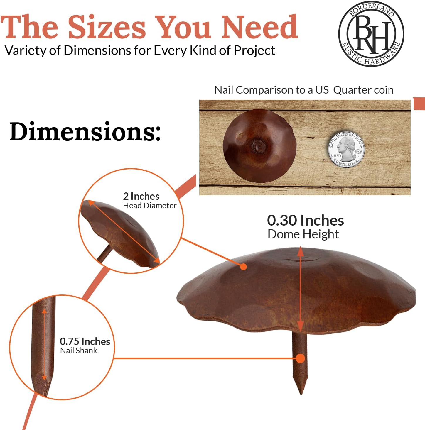 10 Pack 2" Round Head Iron Clavos Decorative Nails – Sealed Rusted – Handmade Rustic Round Fasteners for Farmhouse Shutters, Faux Wood Beams, Barn Doors, Shutters, Gates – Ornamental Wood Accent