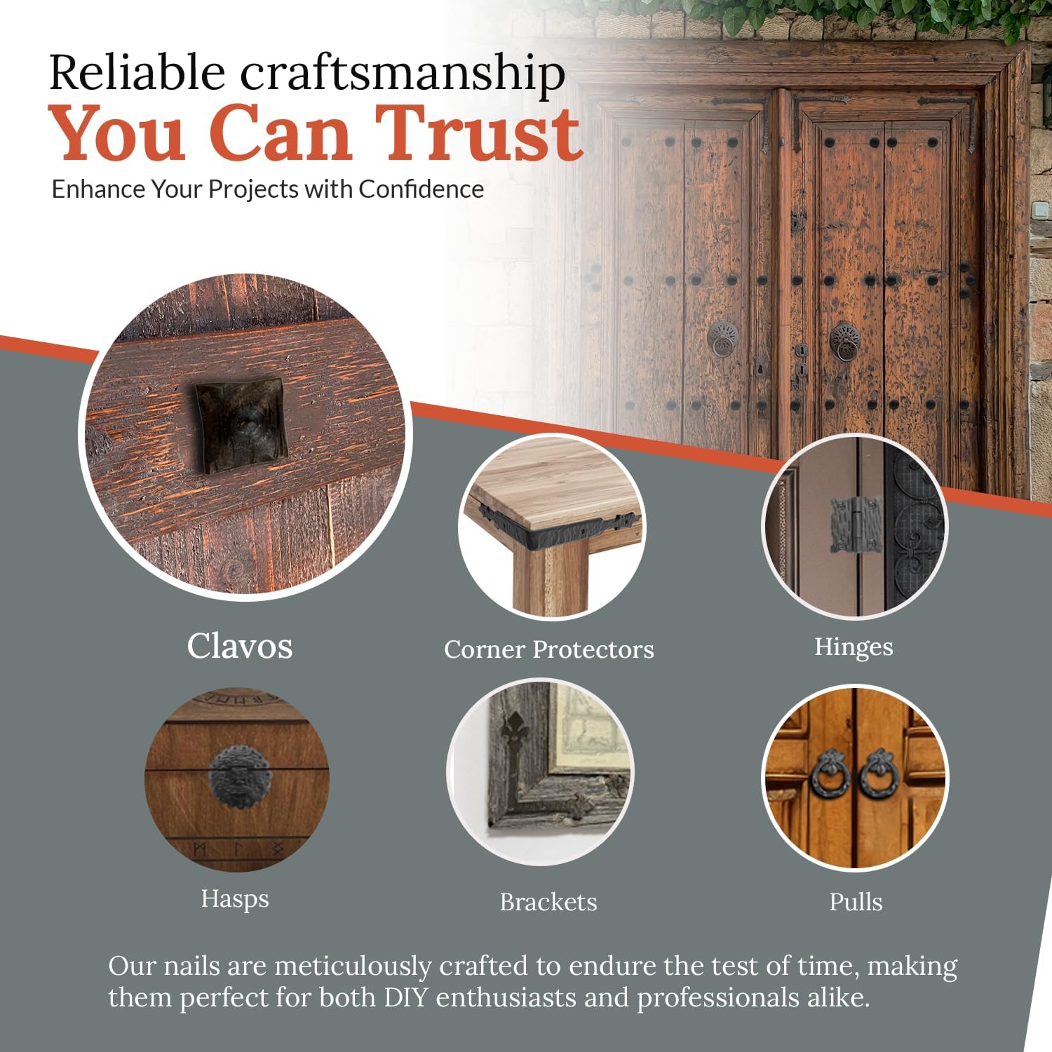 - PREMIUM FABRICATION: Each iron square nail is meticulously MIG welded by hand to ensure maximum strength and longevity. Unlike competitors who use less durable spot welding, our nails are built to withstand the elements, making them ideal for exterior shutters, faux wood beams, and other applications requiring robust and reliable decorative hardware.