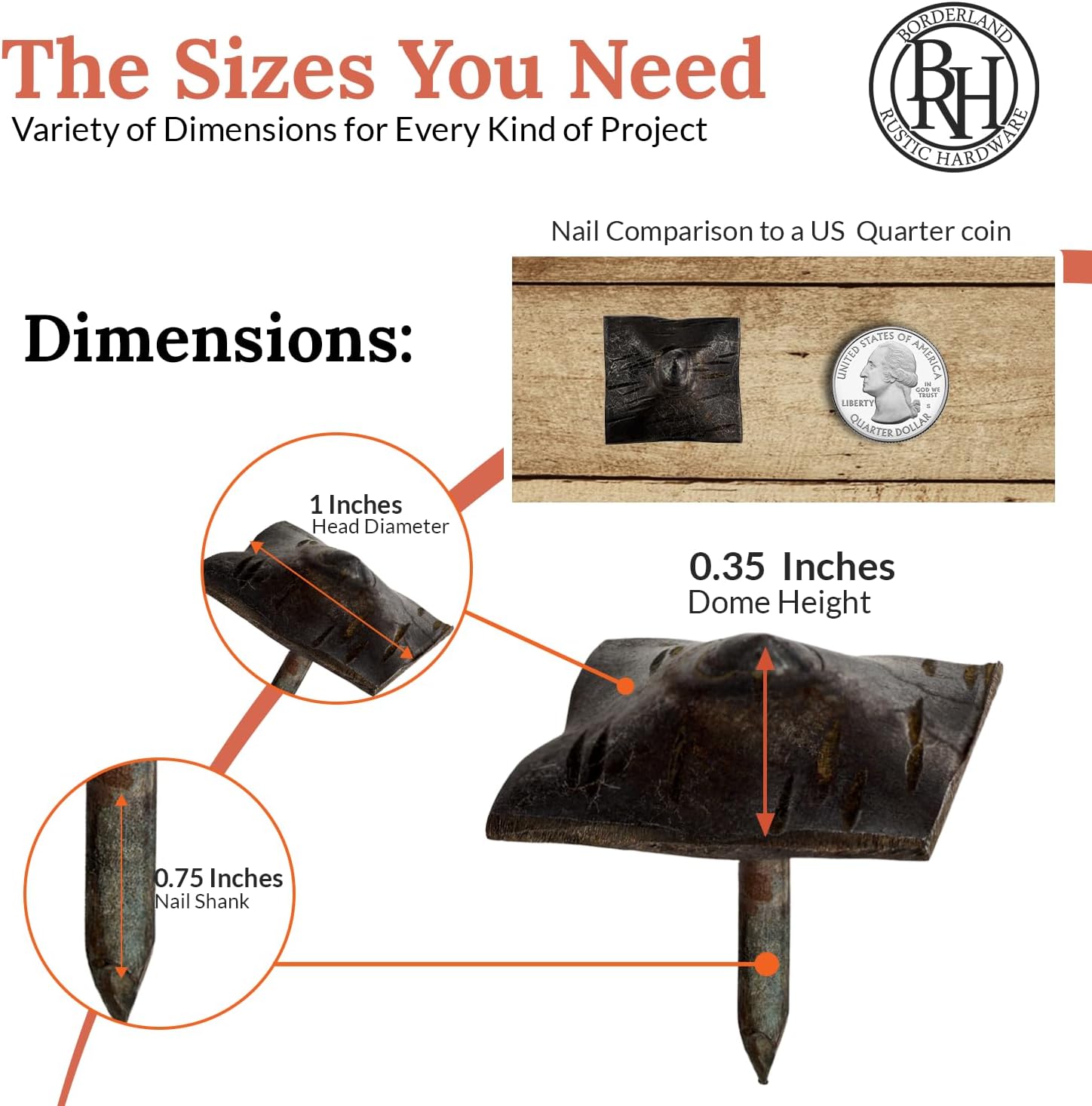 10 Pack 1" Square Head Iron Clavos Decorative Nails – Unfinished – Handmade Rustic Square Fasteners for Farmhouse Shutters, Faux Wood, Barn Doors, Shutters, and Gates – Ornamental Wood Accent
