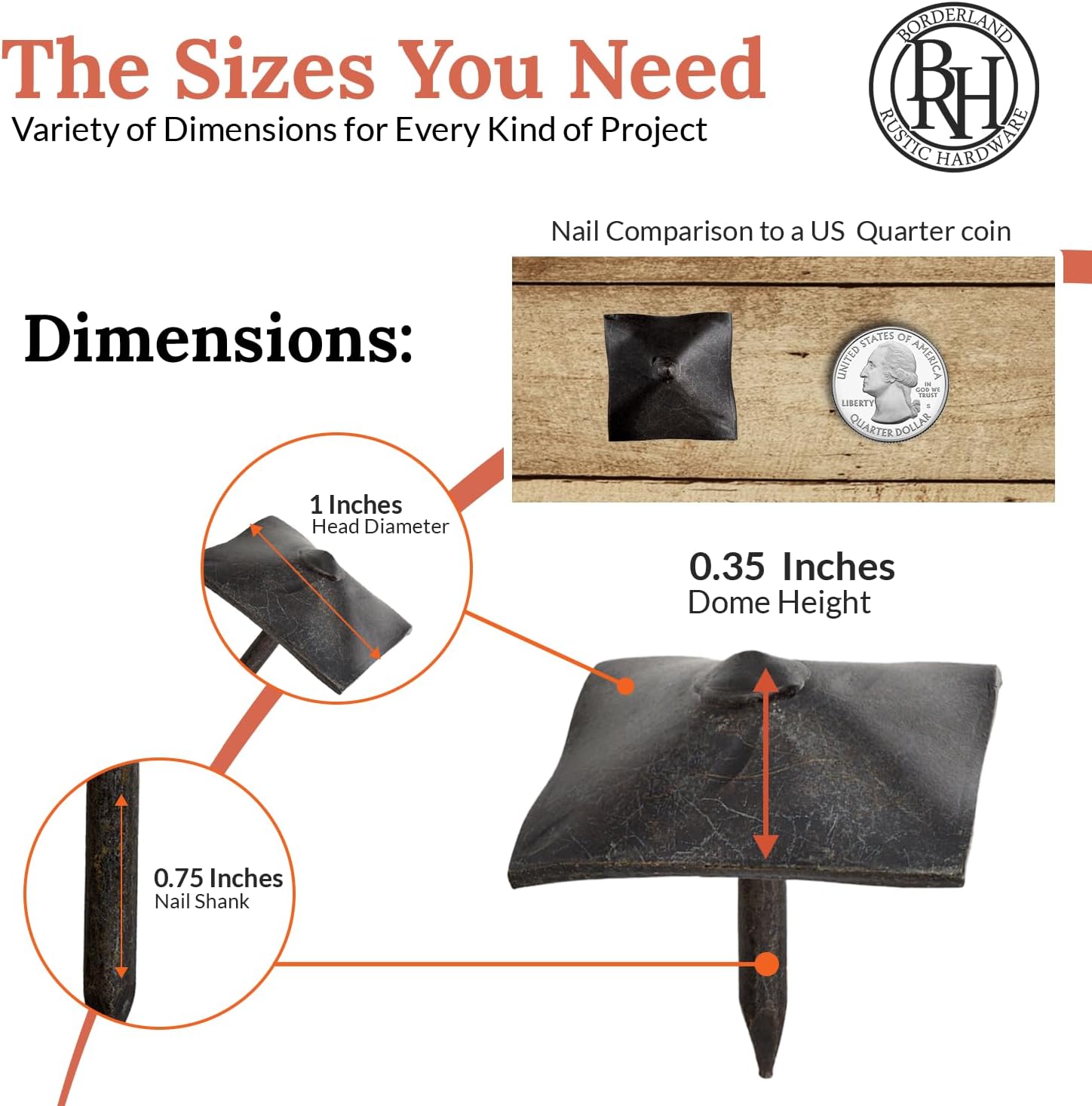 50 Pack 1" Square Head Iron Clavos Decorative Nails – Sealed Unfinished – Handmade Rustic Square Fasteners for Farmhouse Shutters, Barn Doors, Shutters, and Gates – Ornamental Wood Accent