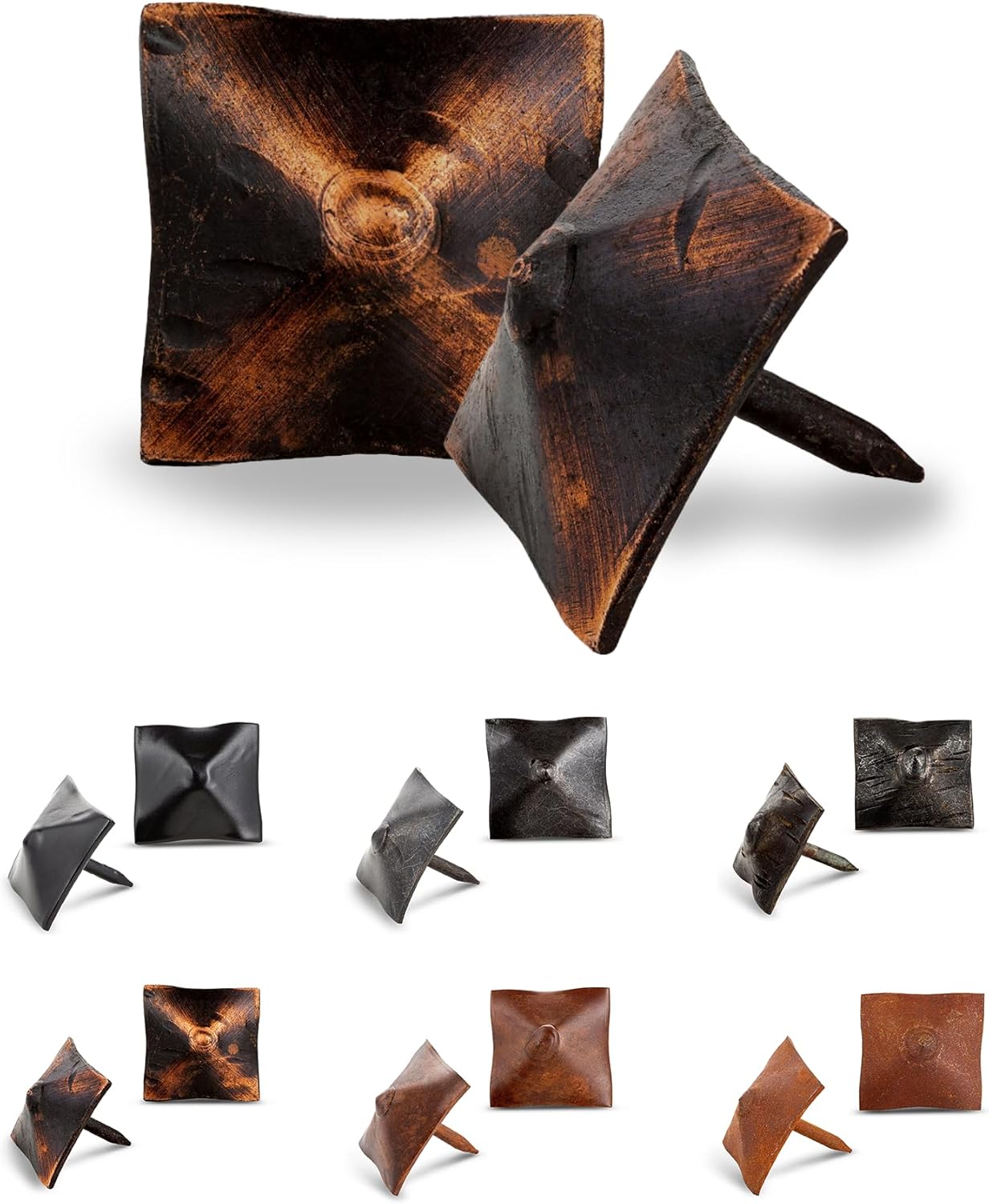 25 Pack 1" Square Head Iron Clavos Decorative Nails – Oil Rubbed Bronze – Handmade Rustic Square Fasteners for Farmhouse Shutters, Barn Doors, Shutters, and Gates – Ornamental Wood Accent
