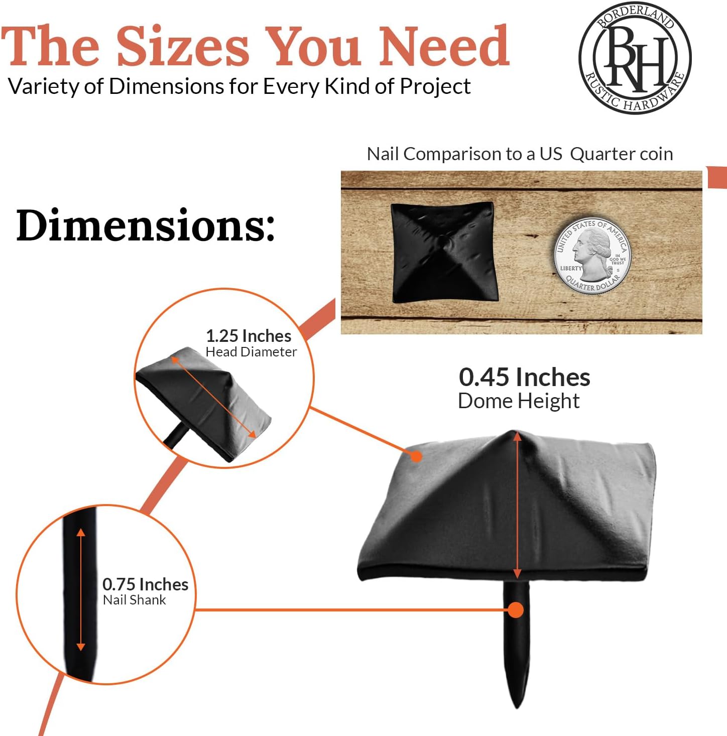 10 Pack 1.25" Square Head Iron Clavos Decorative Nails – Black – Handmade Rustic Square Fasteners for Farmhouse Shutters, Faux Wood Beams, Barn Doors, Shutters, and Gates – Ornamental Wood Accent