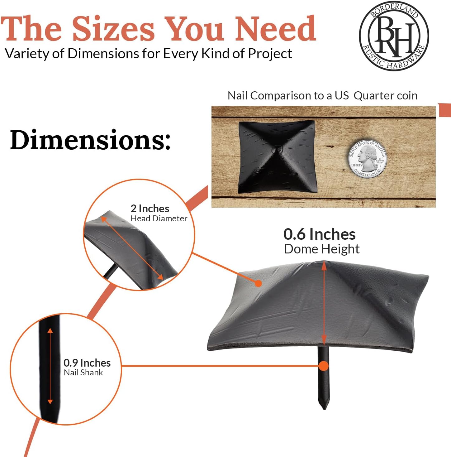 25 Pack 2" Square Head Iron Clavos Decorative Nails – Black – Handmade Rustic Square Fasteners for Farmhouse Shutters, Faux Wood Beams, Barn Doors, Shutters, and Gates – Ornamental Wood Accent