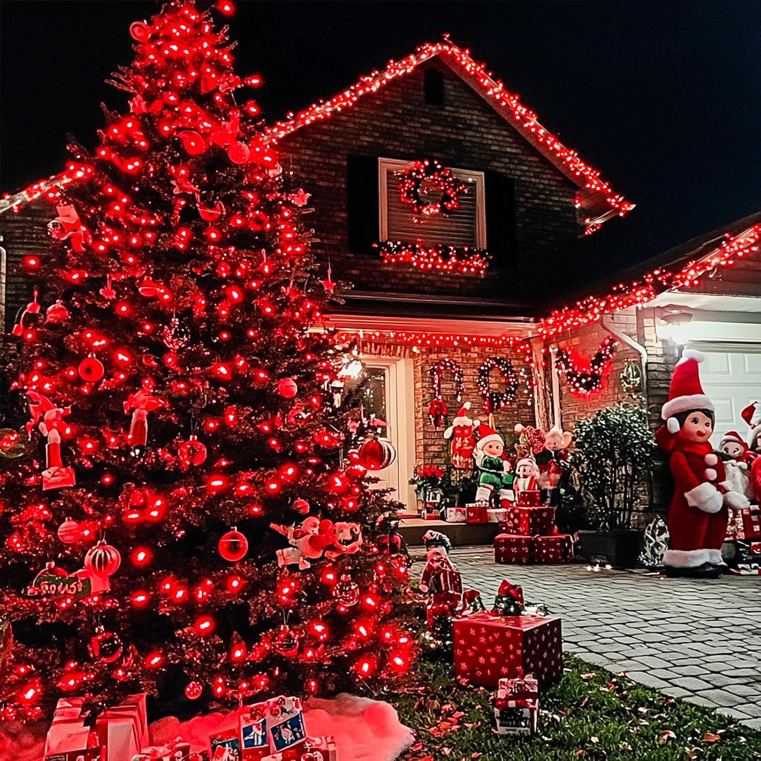 - Remote Control & Dimmable: Our outdoor red Christmas lights come up with wireless remote, it's convenient for you to adjust brightness. The perfect function of adjusting light is really a big surprise. 4 level brightness adjustment (100%, 75%, 50%, 25%), you can also be adjusted according to tree, fireplace, beaches, yards, fences, patio, garden, etc