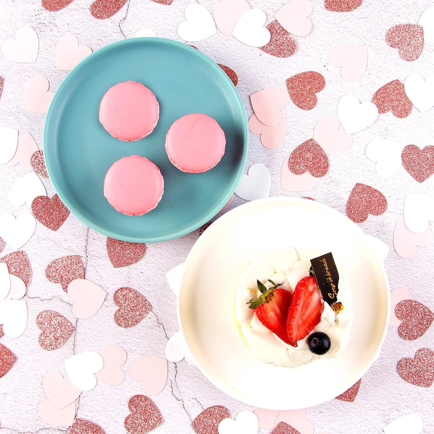 Rose-Gold Pink White Heart Confetti - 300pcs Valentines Mothers Day Engagement Wedding Baby Shower Bachelorette Birthday Party Table Decoration Glitter Paper Decor Lasting Surprise