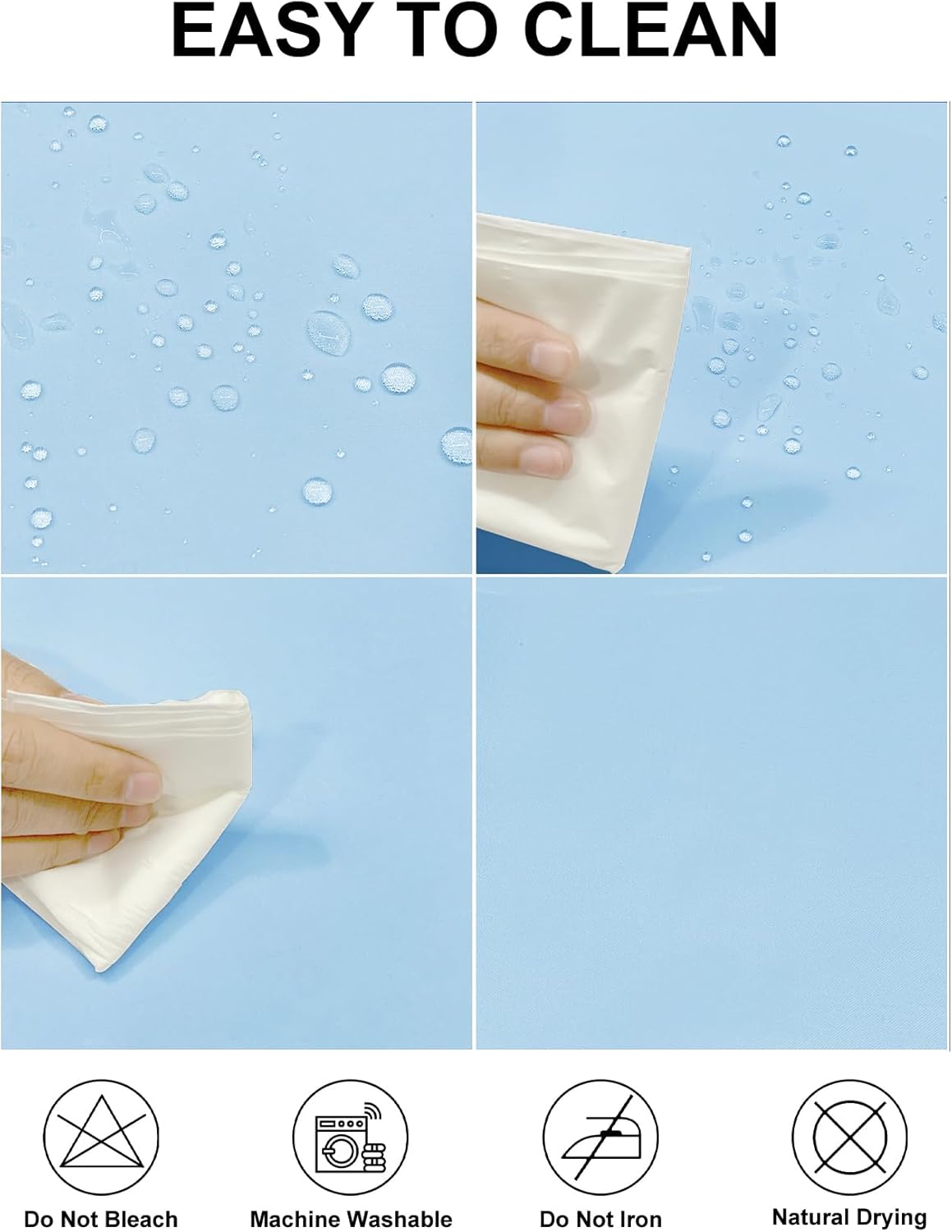 - Performance: Waterproof, wrinkle free, stain resistant. Easy to clean, not easy to deformation and shrink, machine and hand washable are available.