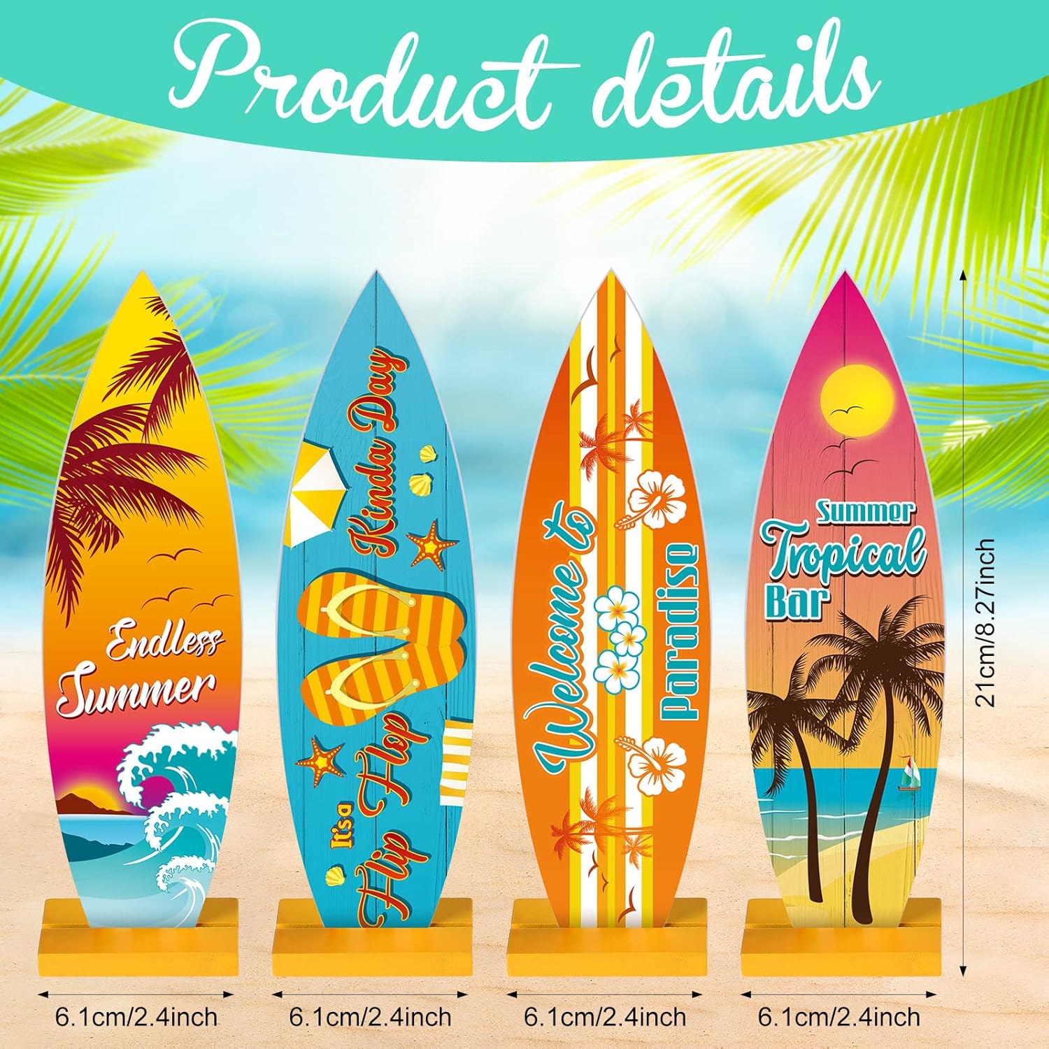 - Surfboard Table Centerpieces: the size of the surfboard beach sign is about 8.27 x 2.4 inches, the right size will not take up too much space, you can display it on many places, please check the size information carefully before you buying