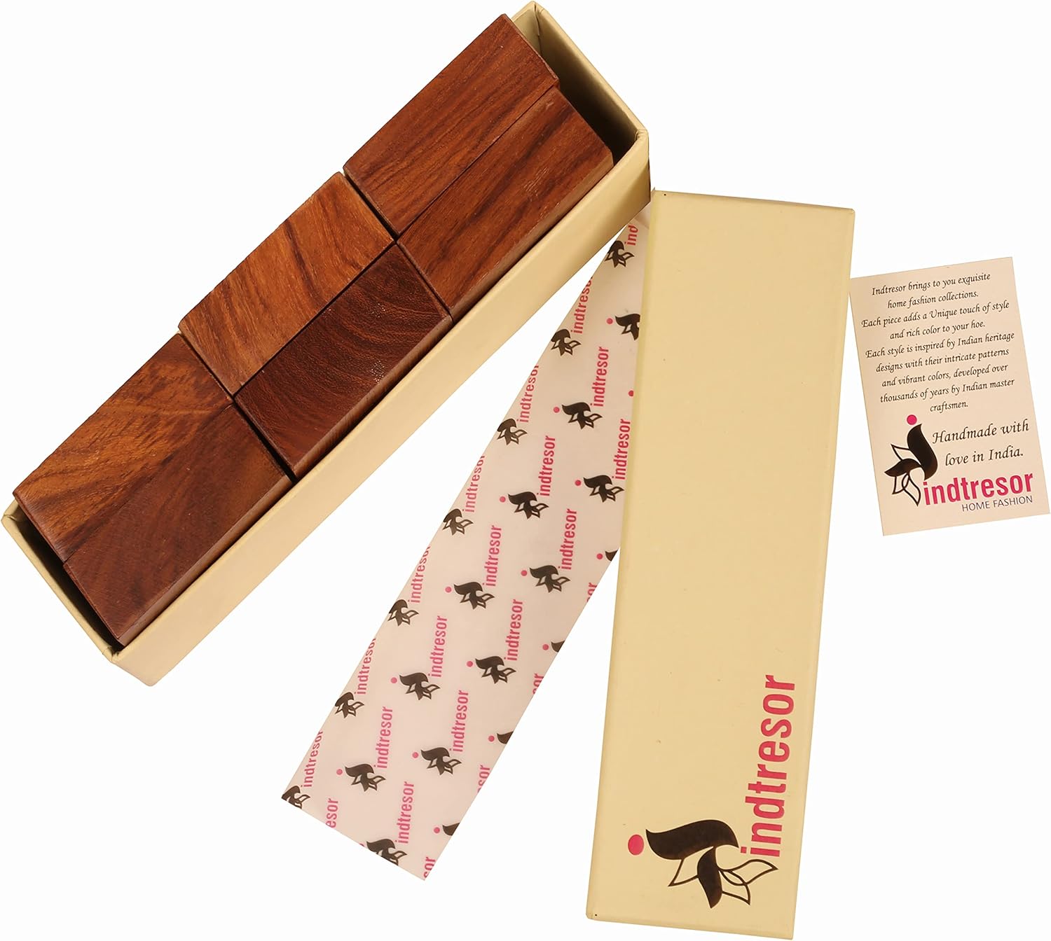 Finely Handcrafted Natural Wood Square Shape Large Size Party Dining Table Napkin Holders in Natural Tone. (Set of 6).