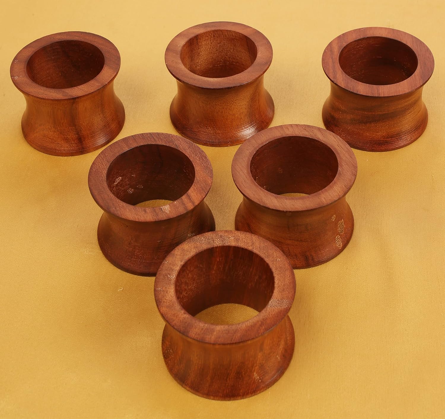 Beautifully Handcrafted Natural Wood Large Size Party Dining Table Napkin Holders in Natural Tone. (Set of 6).