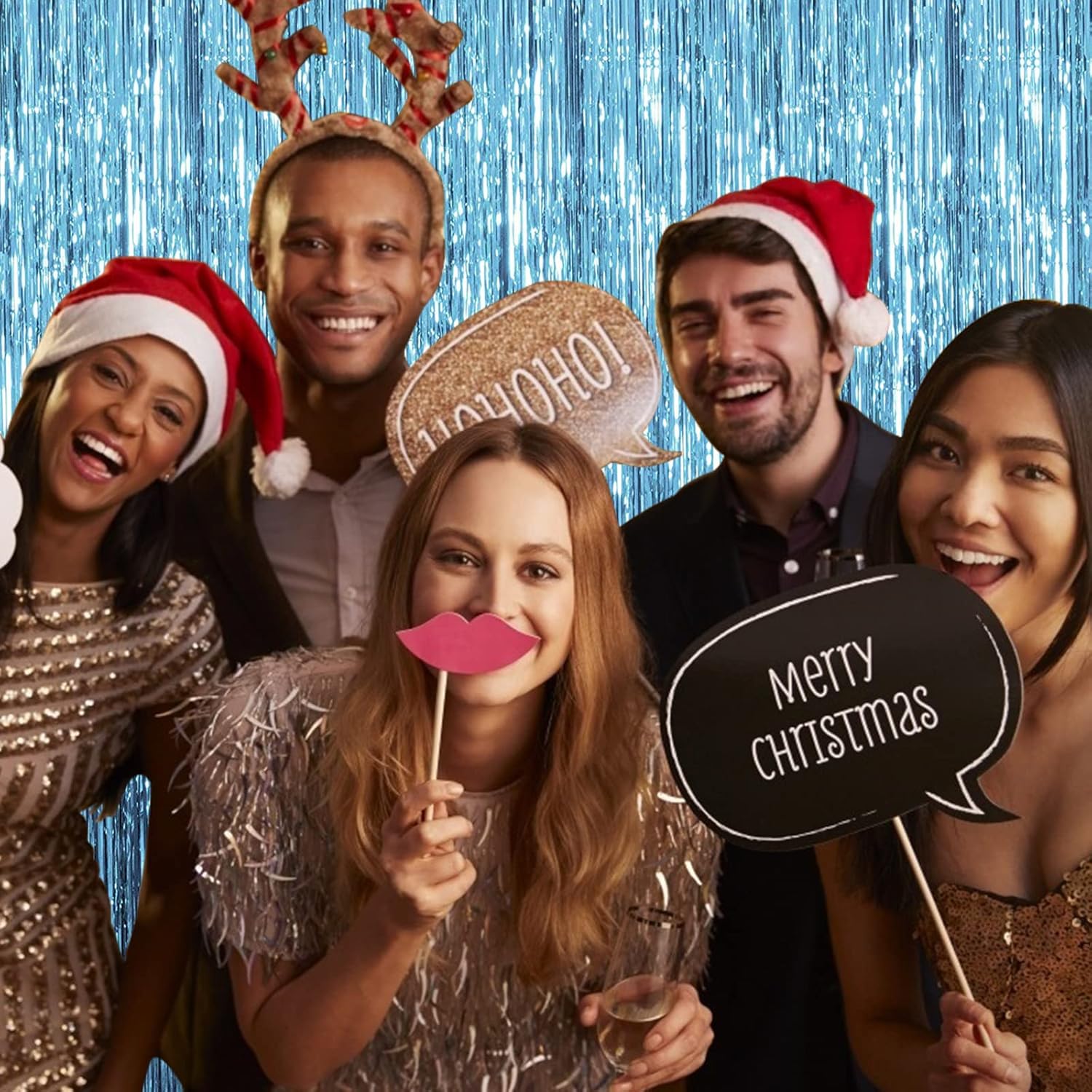 10 Pack Foil Curtain Backdrop Blue Metallic Tinsel Foil Fringe Curtains Photo Booth Props for Birthday Wedding Engagement Baby Shower Bachelorette Christmas Holiday Celebration Party Decorations