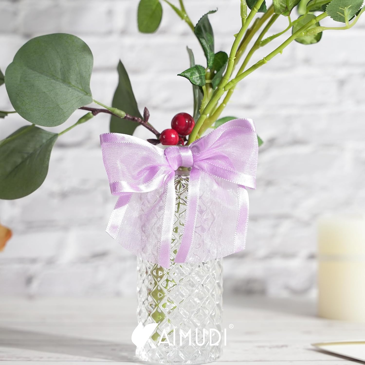 - PRETIED RIBBON BOWS- Decorative bows is made of 1-1/2'' purple organza satin edge ribbon with romantic transparency and glossy lustre, easily adding a elegant final touch to your party favor, cake pop bags, gift basket