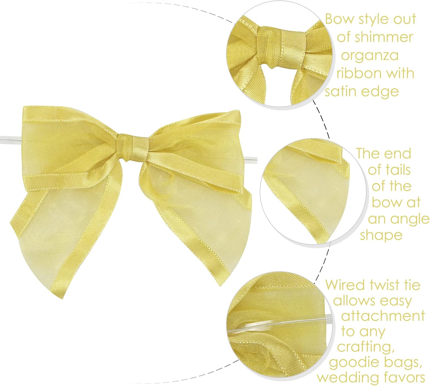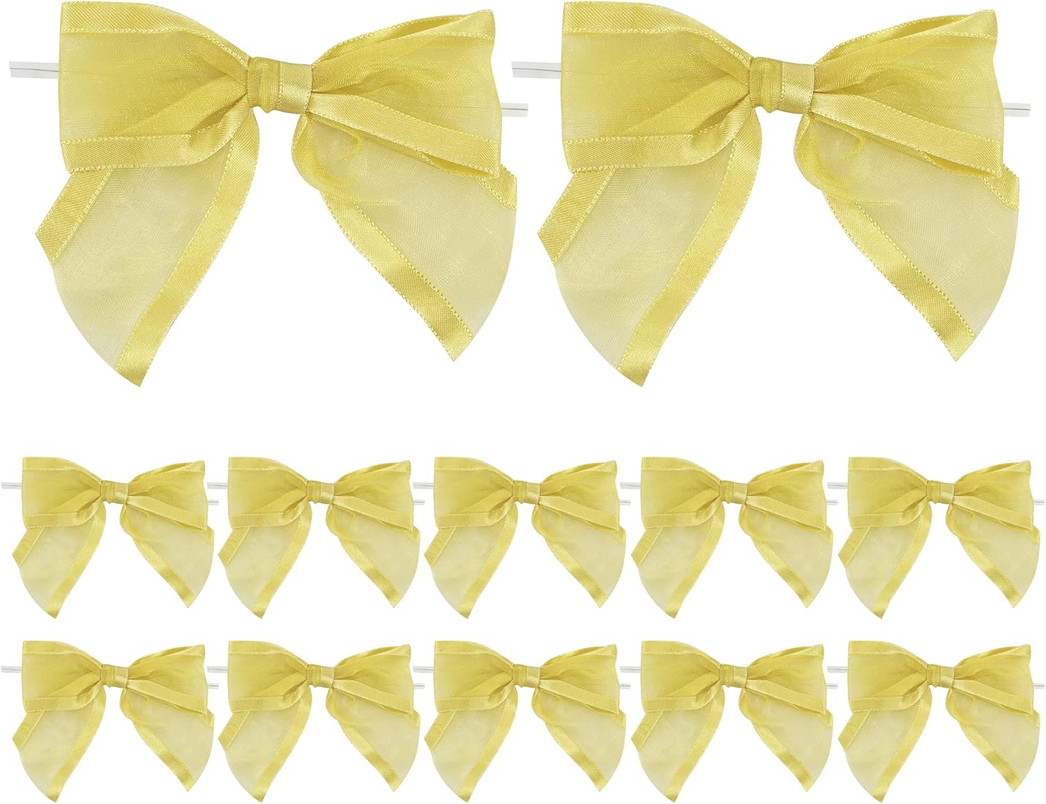 AIMUDI Gold Bows for Treats 4" Organza Bows Premade Twist Ties Bows for Gift Wrapping Crafts Treat Bags Baskets Cake Pop Baby Shower Birthday Wedding Christmas Decor - 12 Counts