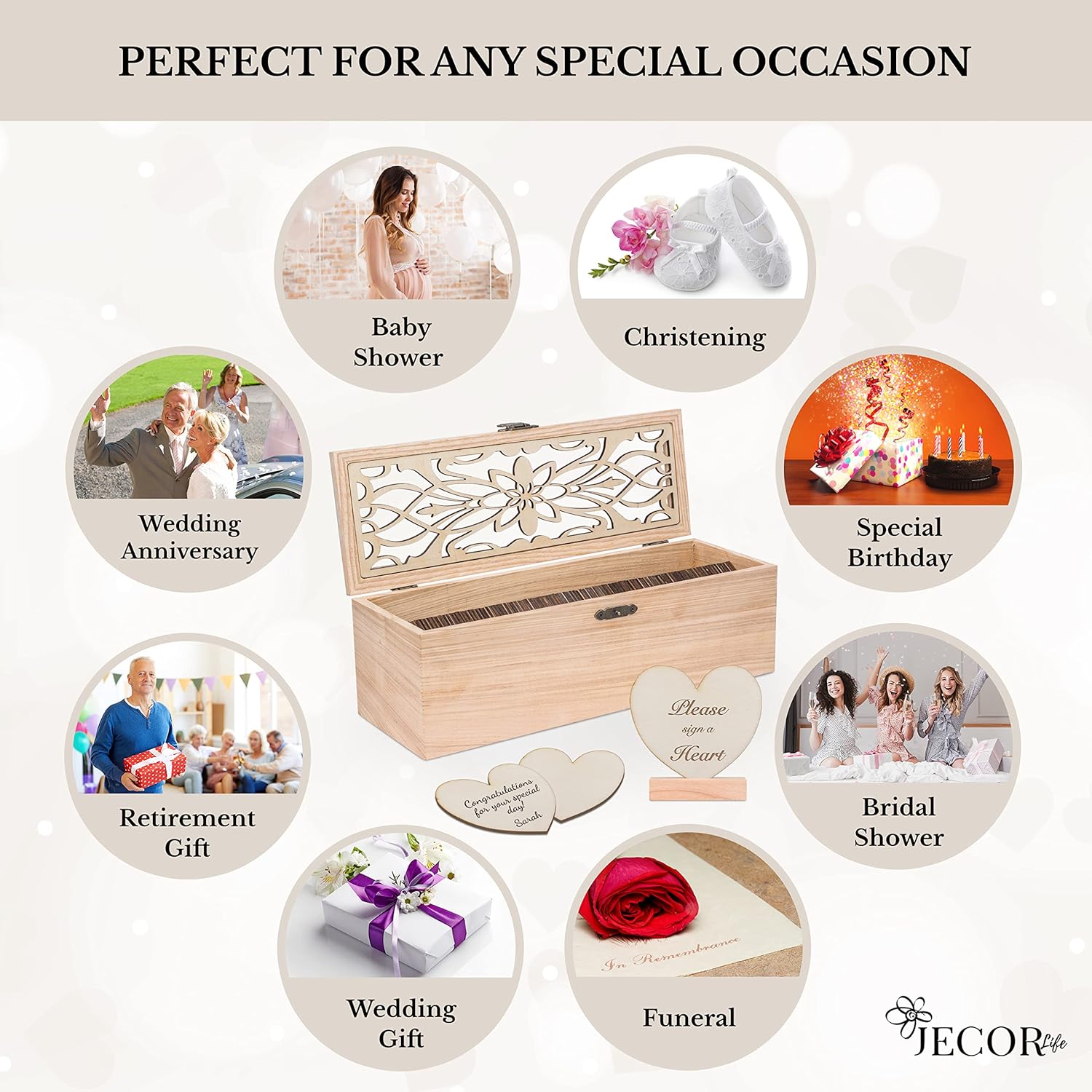 Alternative Guest Book Box - Wedding Guest book Alternative - 98 Large Wooden Hearts - Also for Baby Shower, Bridal Shower, Anniversary, Birthday, Retirement, Funeral Guest Book Alternatives - Pattern