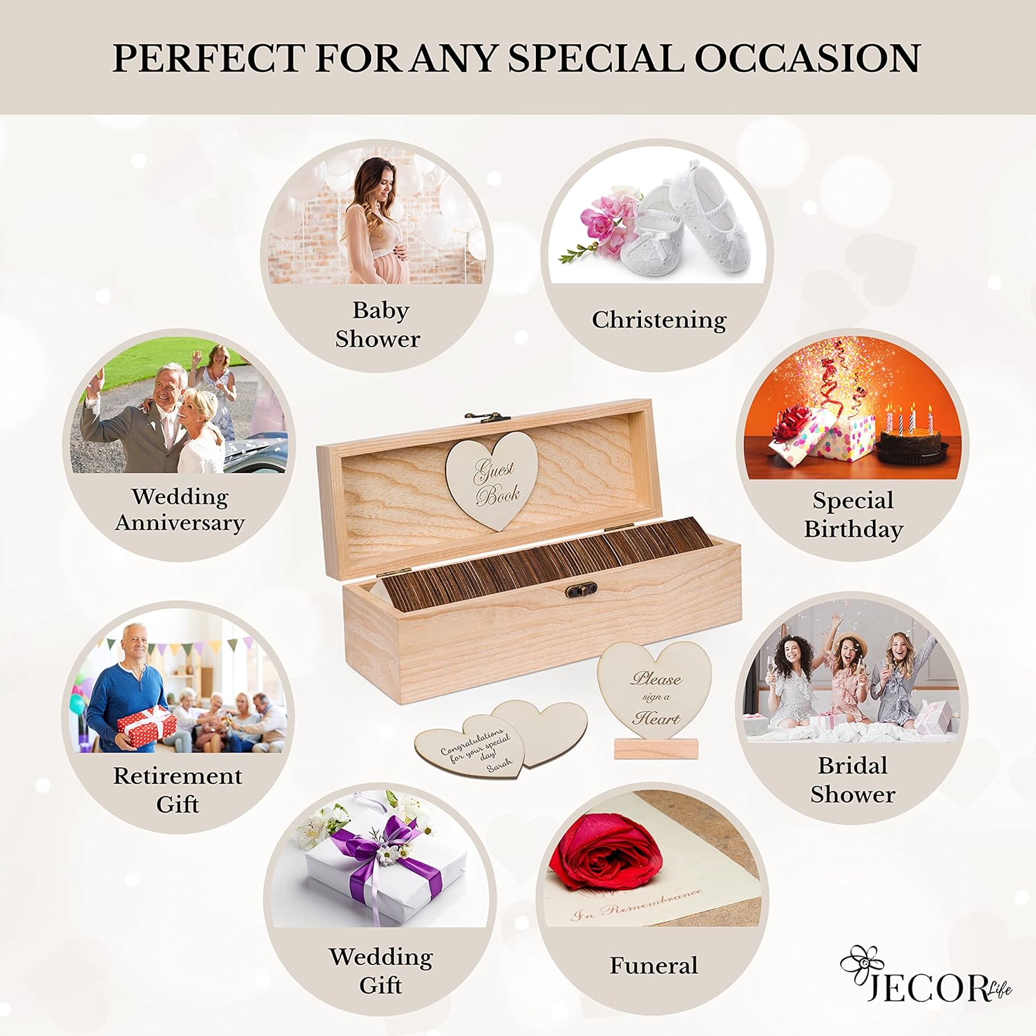 - π Unique Guest Book - This wooden guestbook alternative is made for you. There are many wedding guestbook alternatives in the market but none that is more of a keepsake than ours. With extra large hearts, perfect for your guests to leave advice and well wishes message, to cherish your memories for years to come.