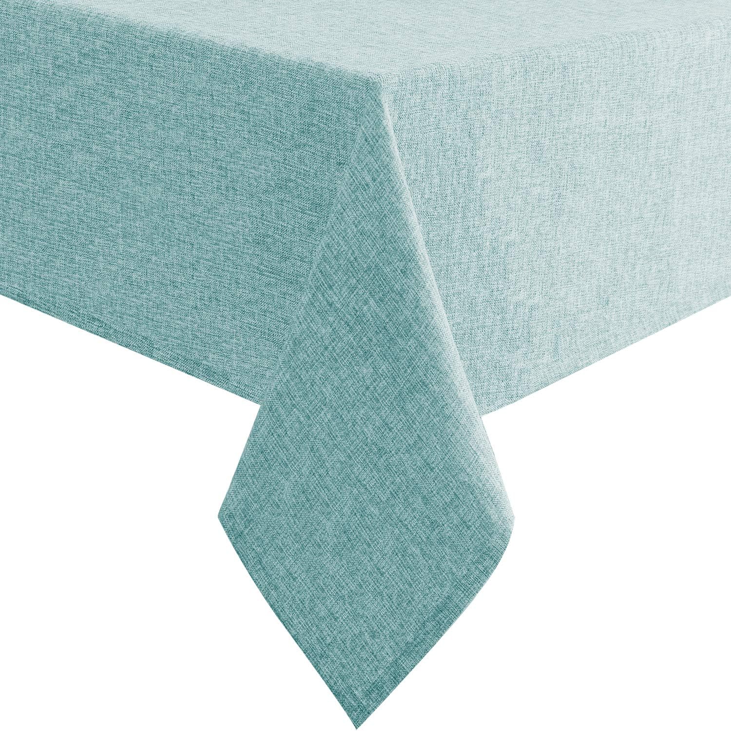 Hiasan Faux Linen Rectangle Tablecloth - Wrinkle and Stain Resistant Washable Table Cloth for Kitchen Dining Room Holiday Table Cover for Party Dinner, Aqua, 30 x 60 Inch