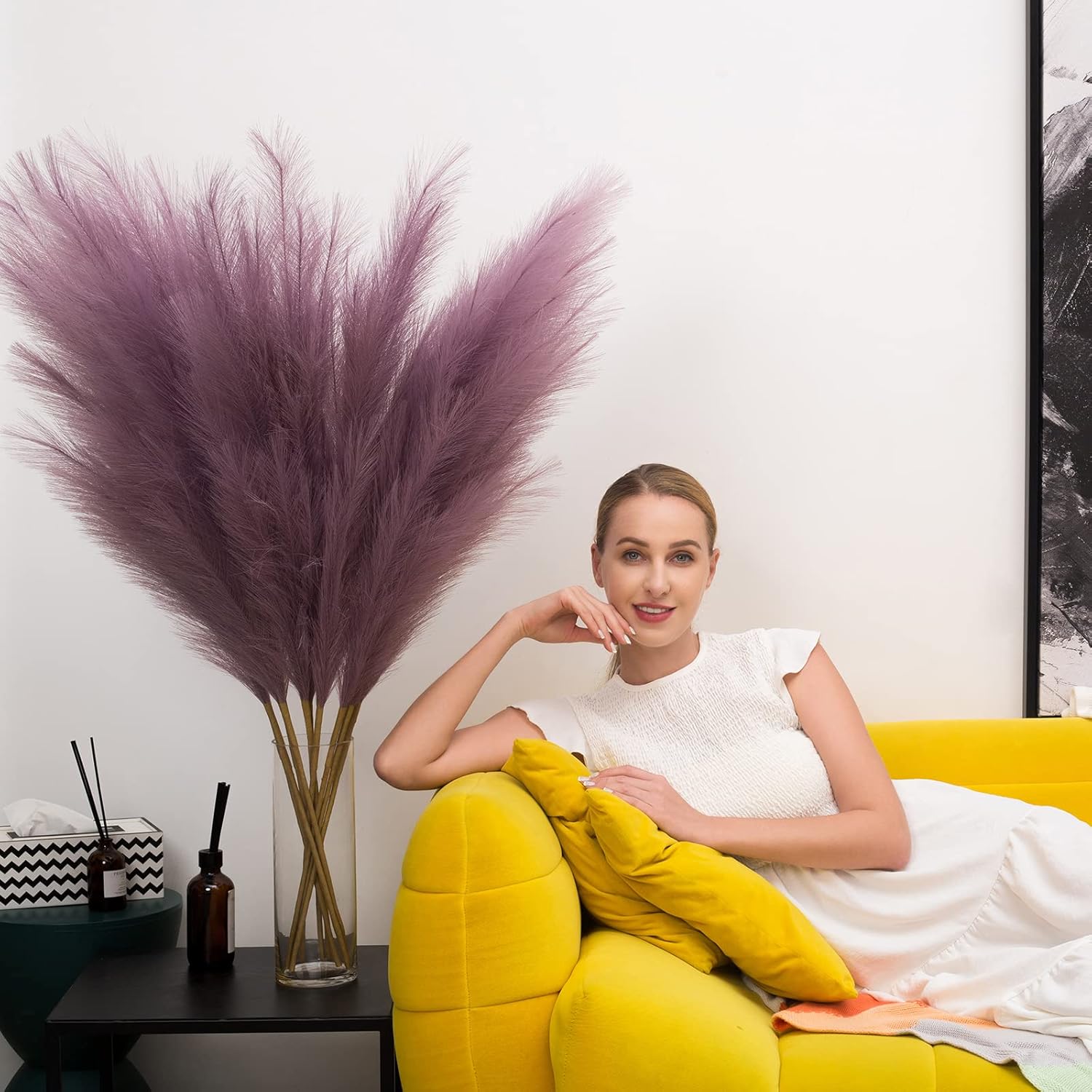 - Minimalistic&Elegant Pampas Grass Decor: Really nice faux pampas grass for home decor, display in your hallway, kitchen, living room, bedroom, front room, dining room, or entryway... any space. Pampas grass are also a great addition to weddings, flower arrangements, lifestyle photography, party, bohemian decorating and etc