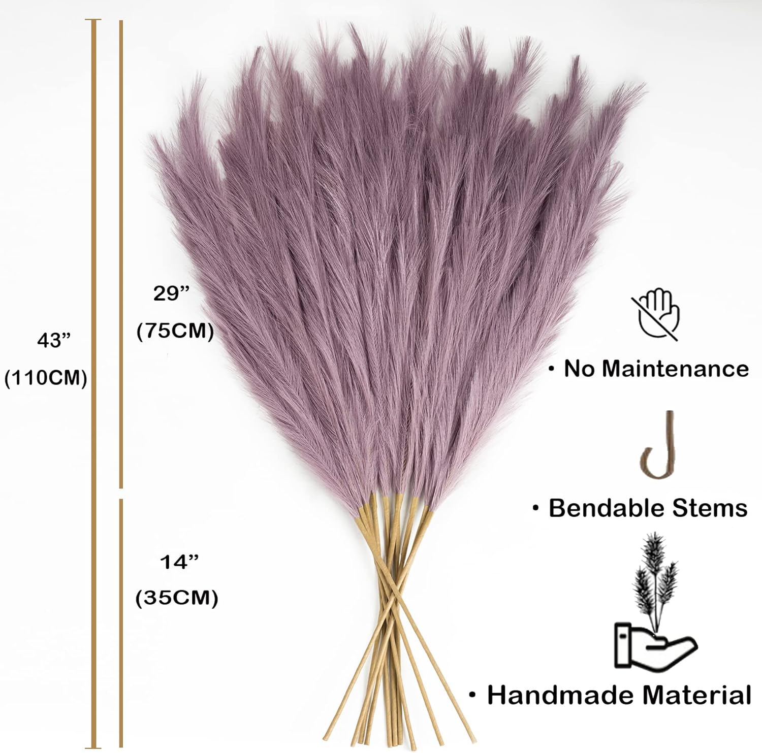 - Great Alternative for Real Pampas: Unlike dried pampas grass, our pompous grass does not shed like the real version, the long fibers on each stick are tied so strongly that they do not fall off. No allergens, no smell, without the maintenance cleaning and will last a long time