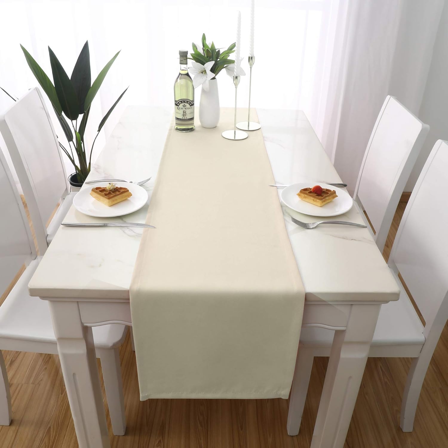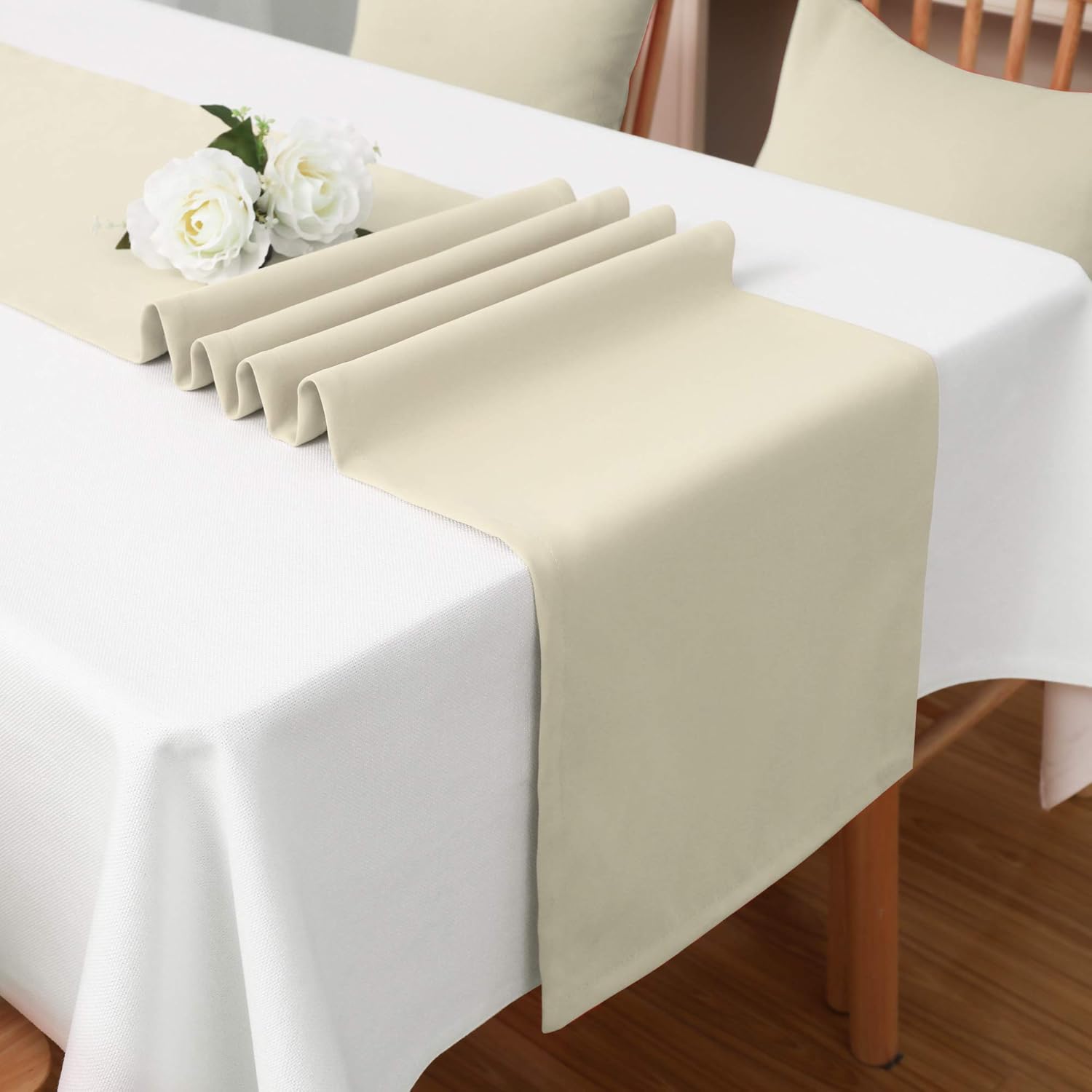 DUALIFE 2 Pack Table Runner 14 x 72 Inch Long Table Cloth Table Runners for Wedding Engagement Banquet Graduations Birthday Party Decorations Cream Beige