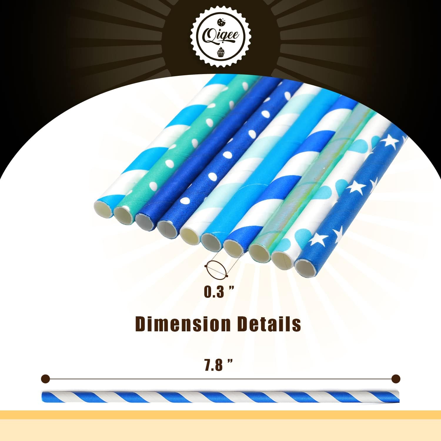 Blue Paper Straws 150pcs Disposable Bulk(10 Pattern) qiqee