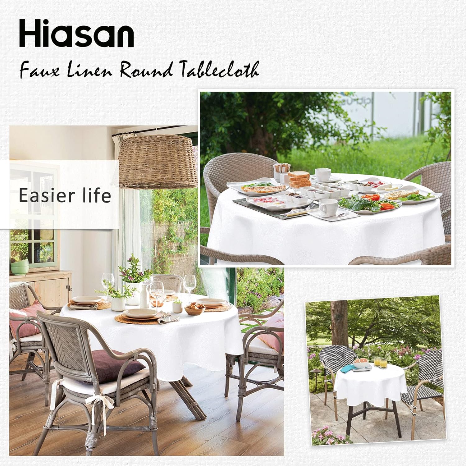 Hiasan Round Linen Tablecloth 70 Inch - Wrinkle and Stain Resistant Washable Polyester Fabric Table Cloth for Outdoor Dining Room Kitchen Party, White