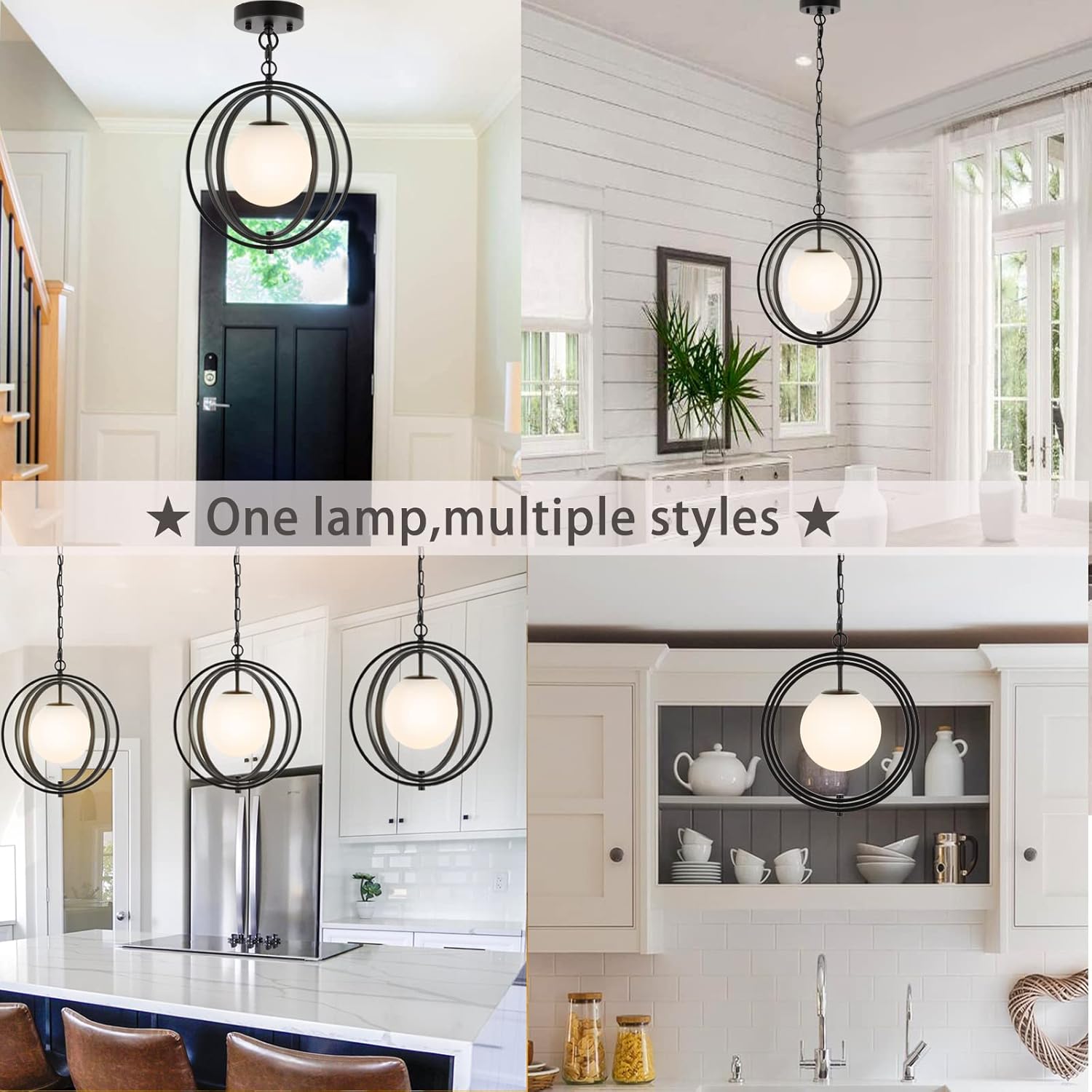 Black Orb Chandelier 1 Light Globe Pendant Light Fixtures White Globe Glass Shade Hanging Ceiling Light for Dining & Living Room, Bedroom, Foyer and Kitchen Island