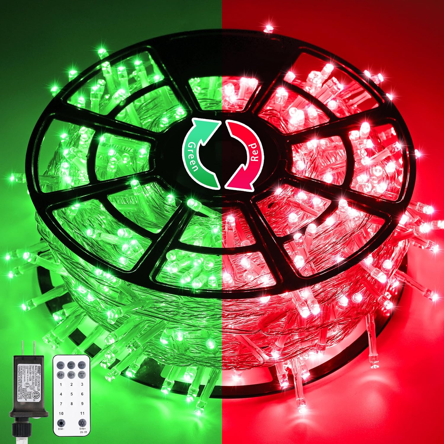 JMEXSUSS 168ft 600 LED Red to Green Halloween Lights Outdoor, Red Green Color Changing Christmas Lights, Christmas Twinkle String Lights Plug in for Tree Porch Yard Halloween Decorations