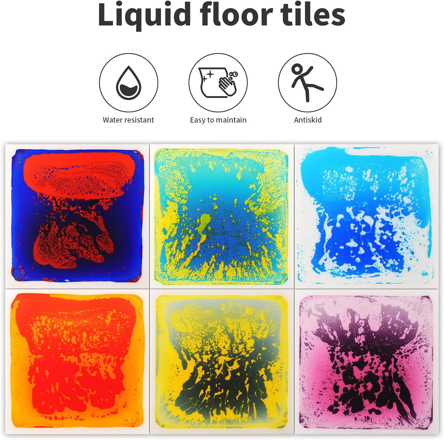 Art3d Liquid Sensory Floor Activity Tiles, 11.8"x11.8" Square, Multicolor, 6 Tiles